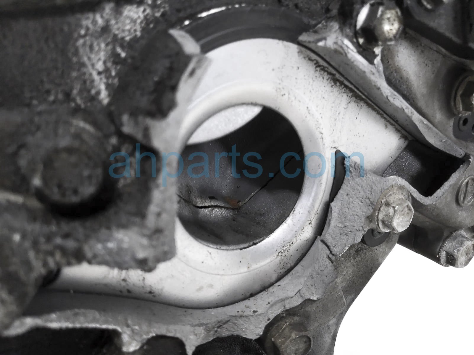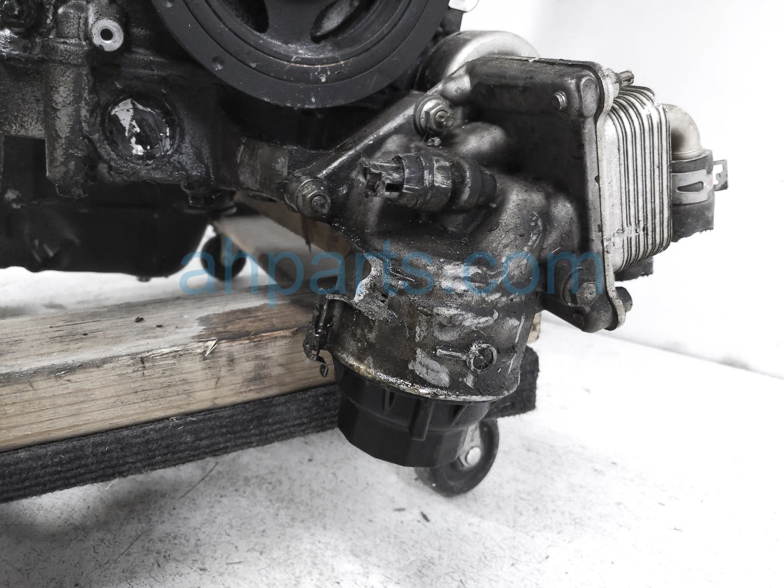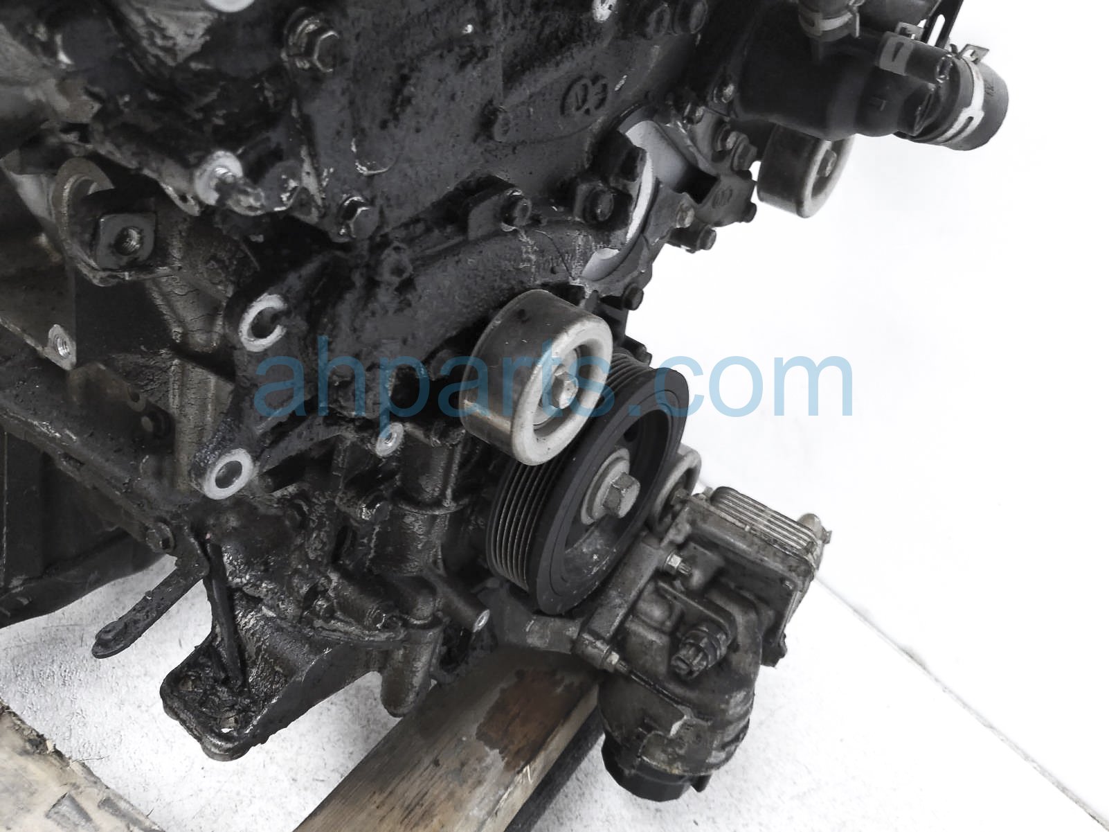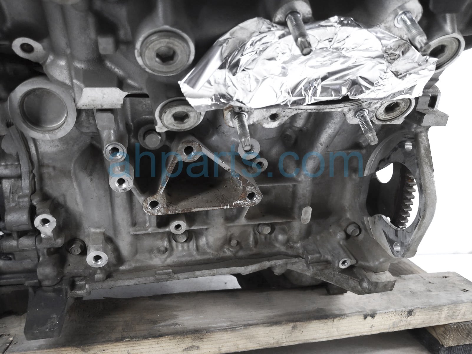 This item has the following note: 'Timing chain cover needs to be replaced (cracked behind water pump), lower oil pan is damaged, front timing sensors broken - grade c.'