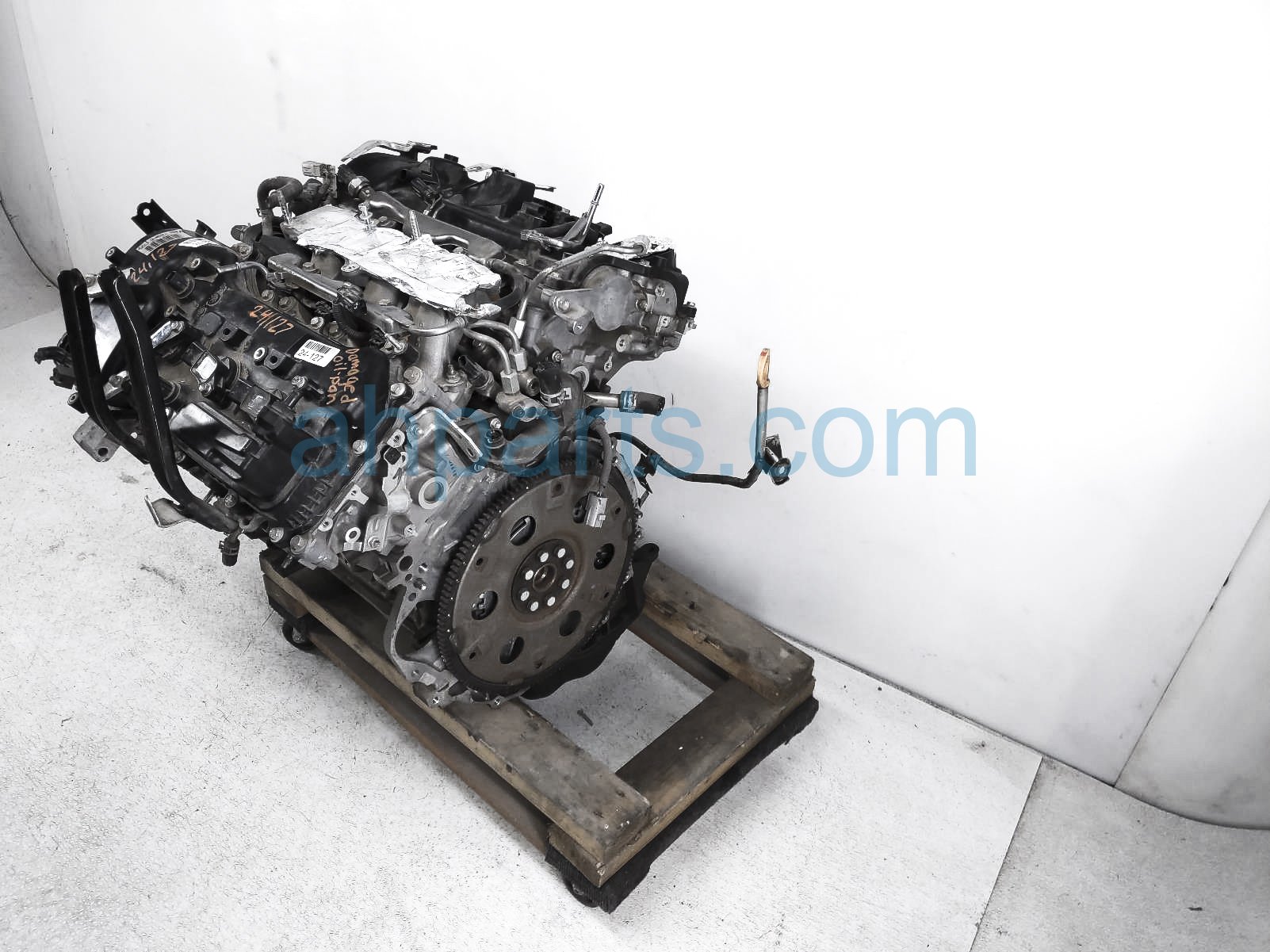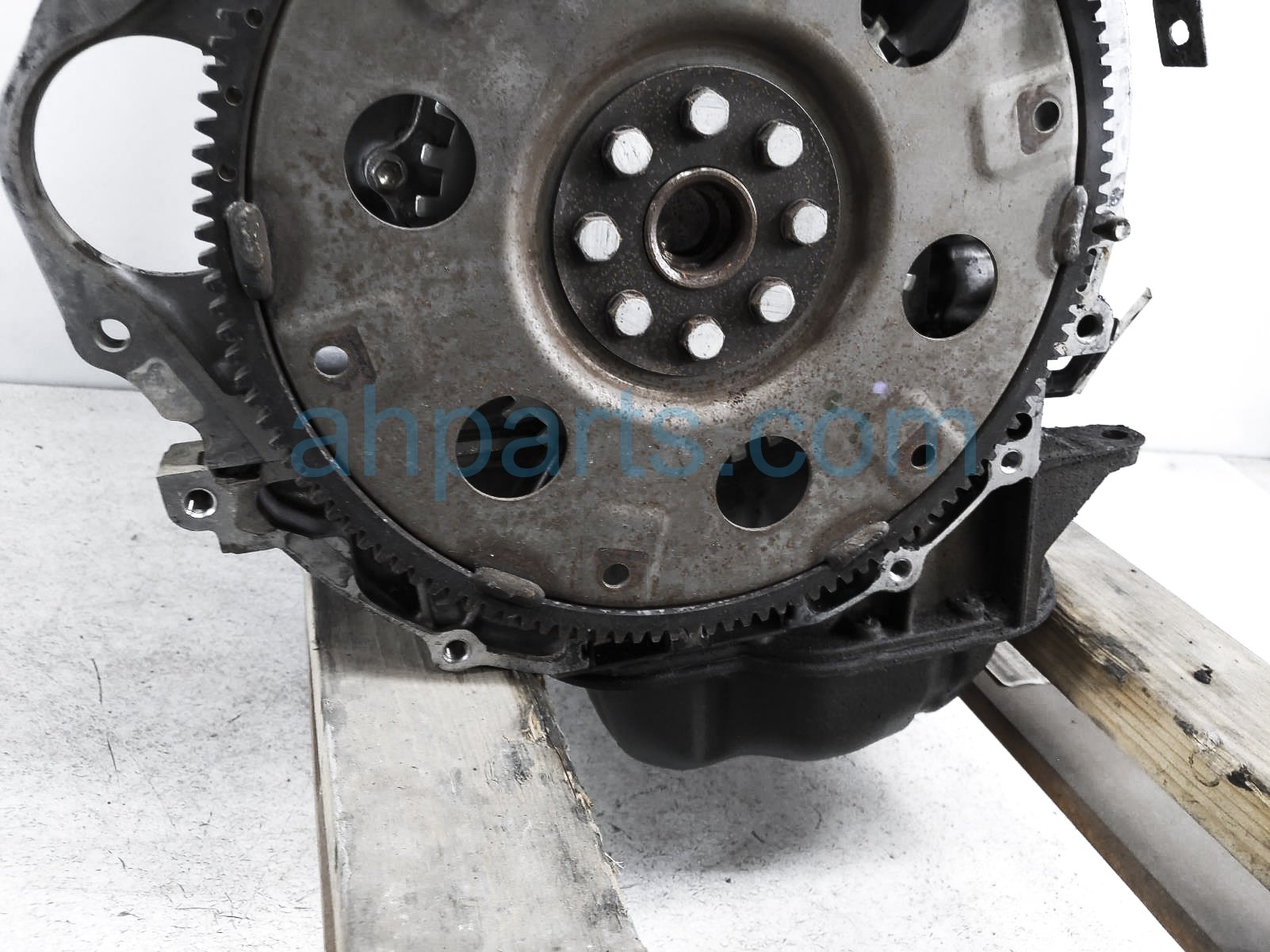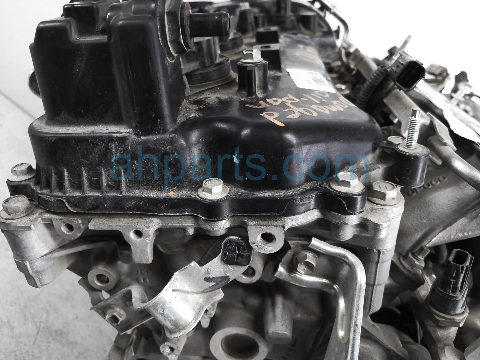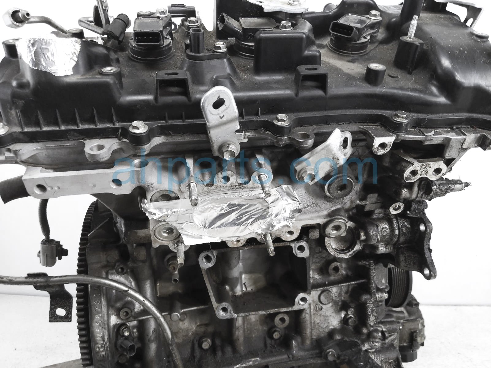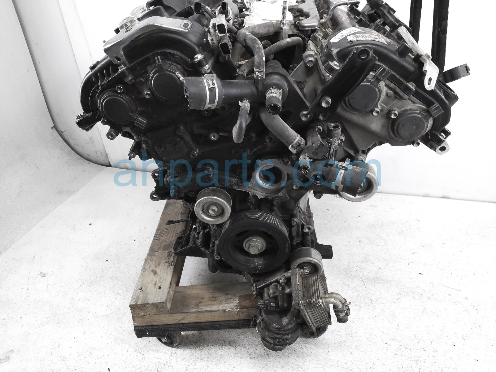 This item has the following note: 'Timing chain cover needs to be replaced (cracked behind water pump), lower oil pan is damaged, front timing sensors broken - grade c.'