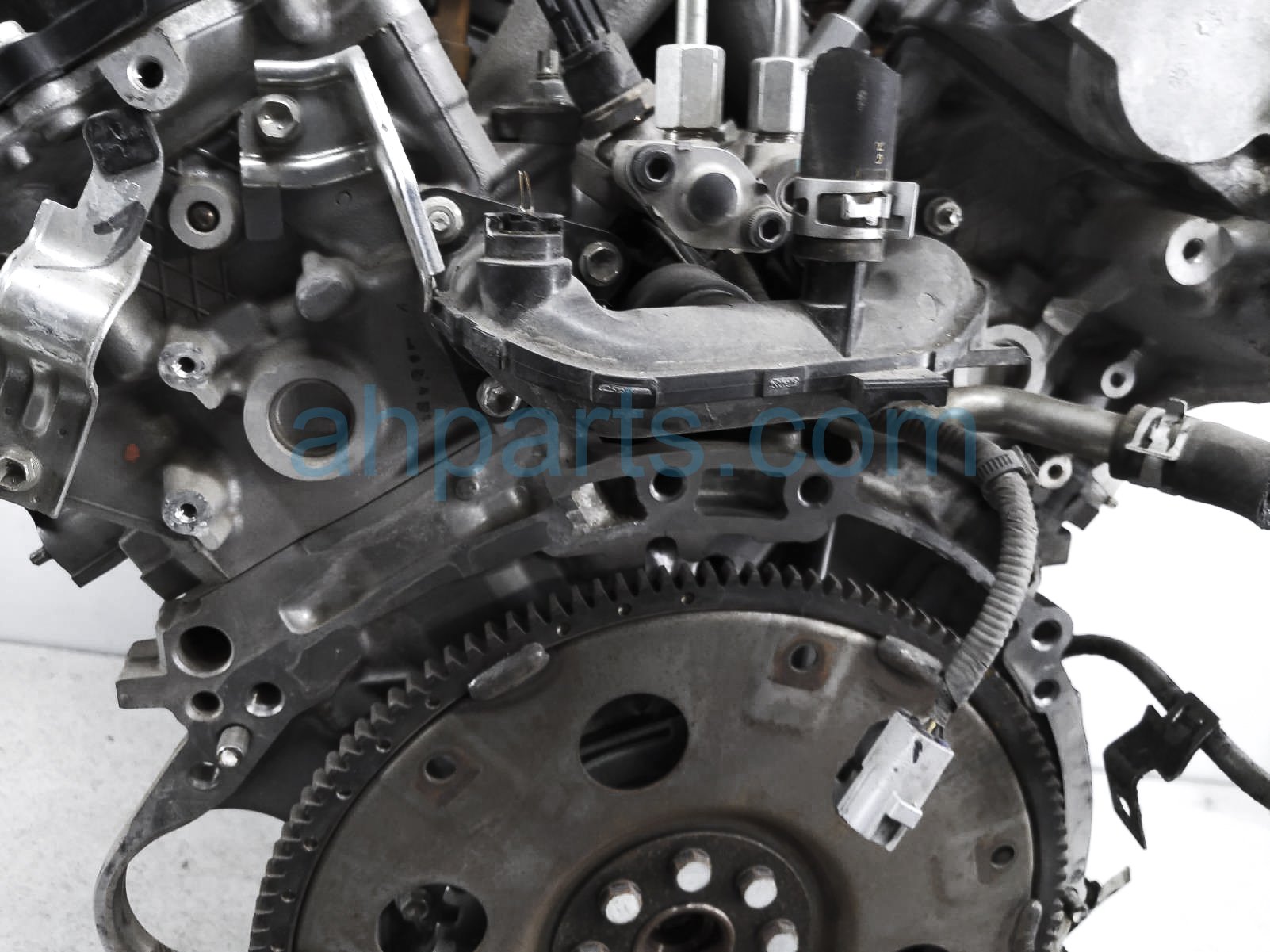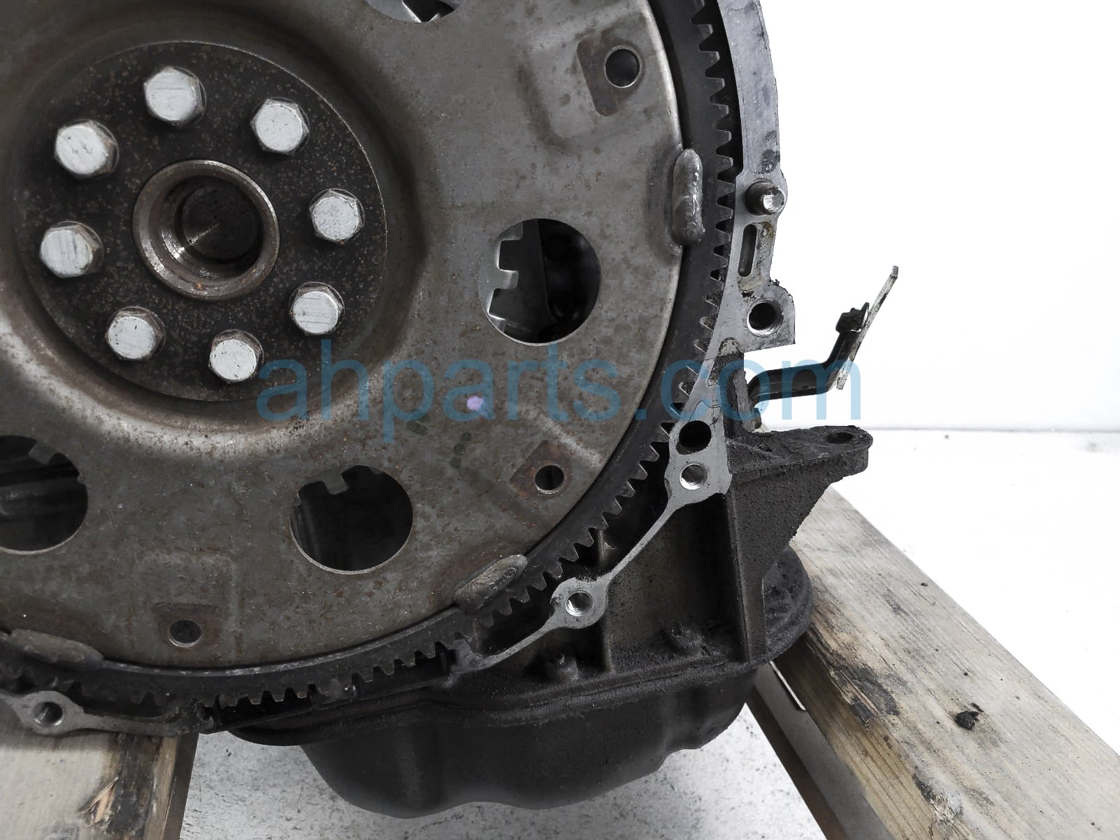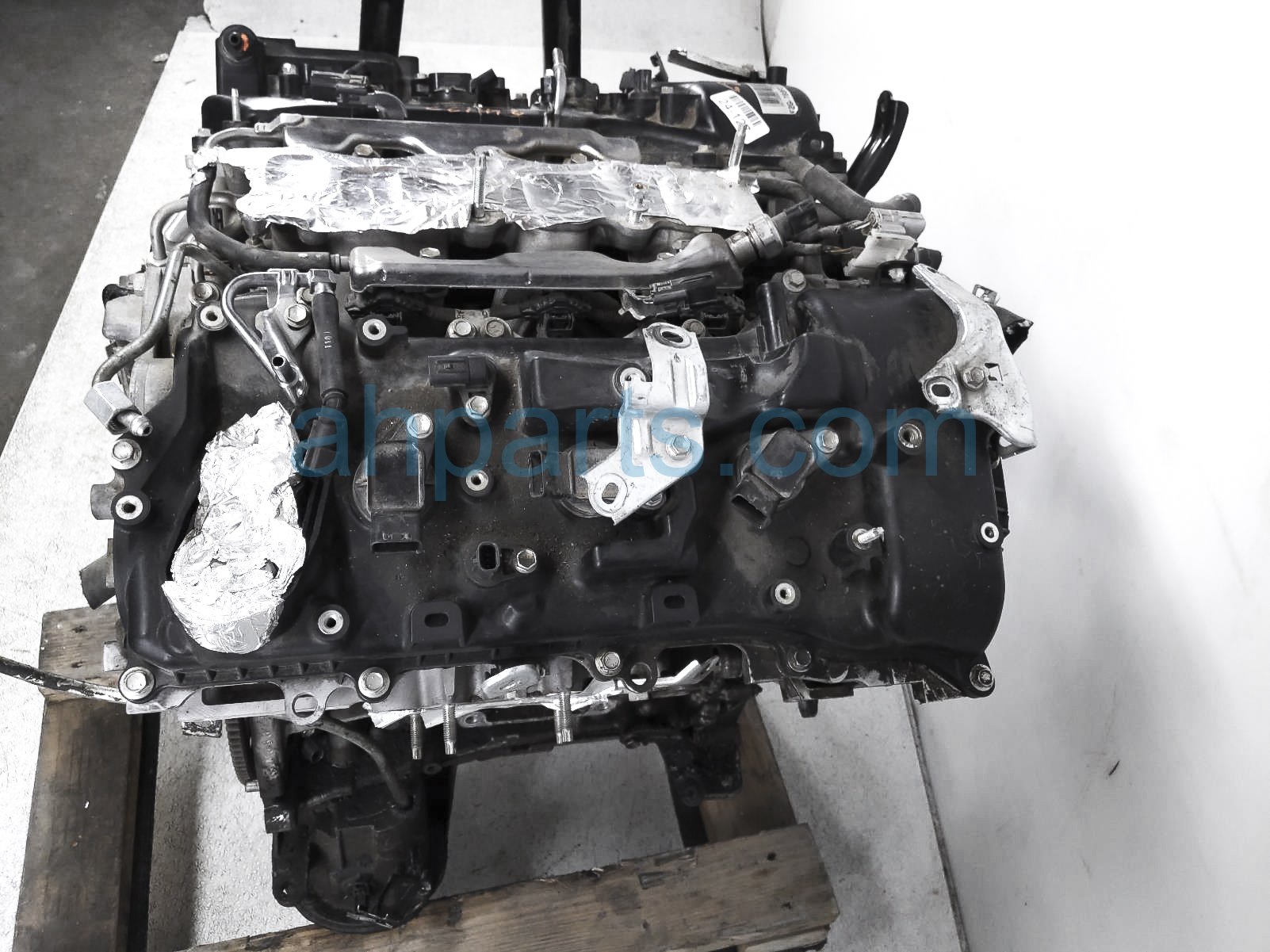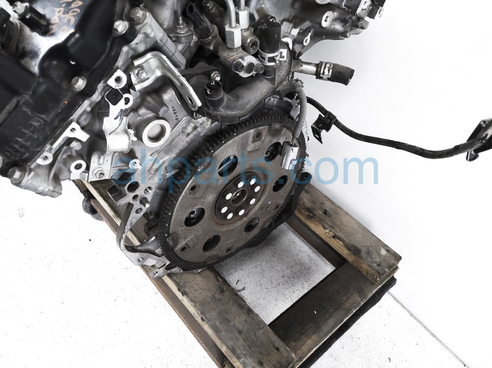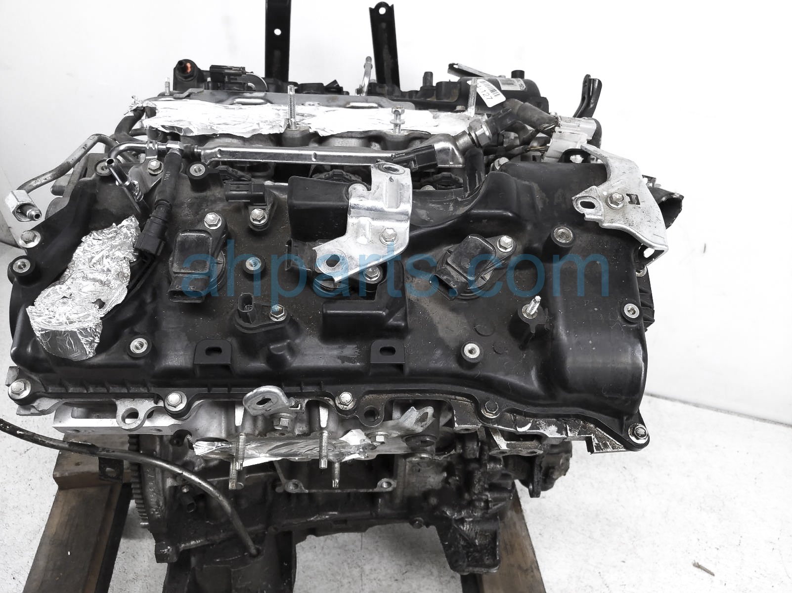 This item has the following note: 'Timing chain cover needs to be replaced (cracked behind water pump), lower oil pan is damaged, front timing sensors broken - grade c.'