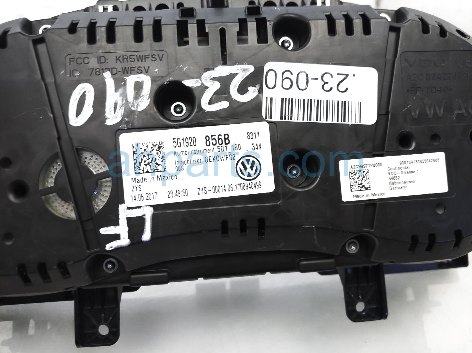 2017 Volkswagen Golf GTI instrument gauge speedometer cluster - 58k mi - is a used item with a 1 year warranty. This OEM replacement instrument gauge speedometer cluster - 58k mi - is genuine and has part numbers 5G1-920-856-B, and 5G1920856B. This Volkswagen part sells for $95. This item has the following note: 'This item has a broken casing with a hole in it.'