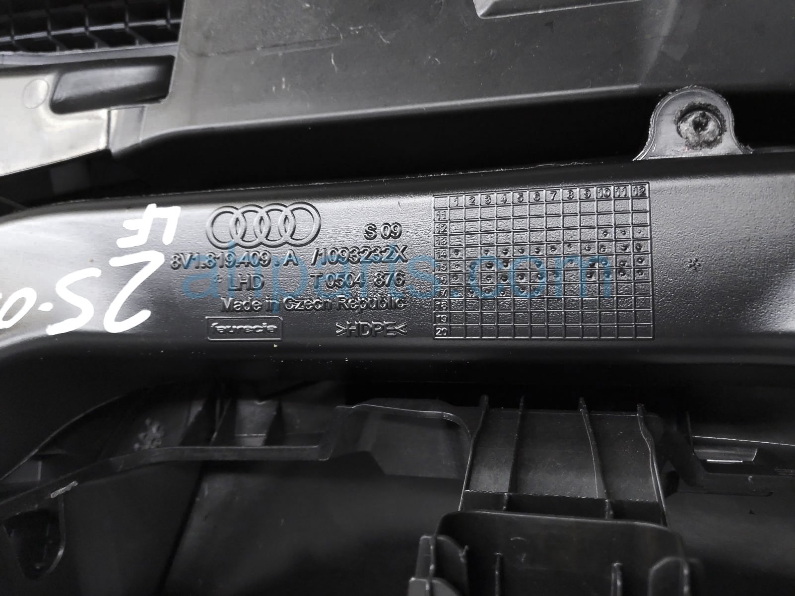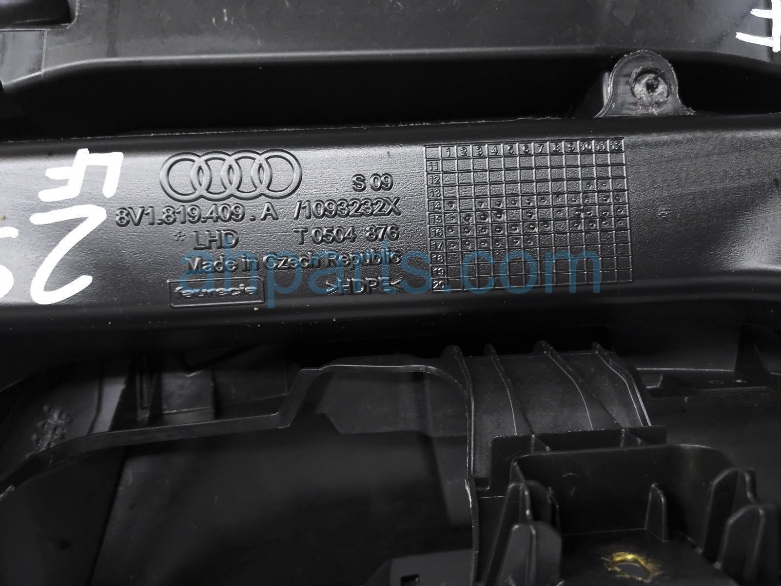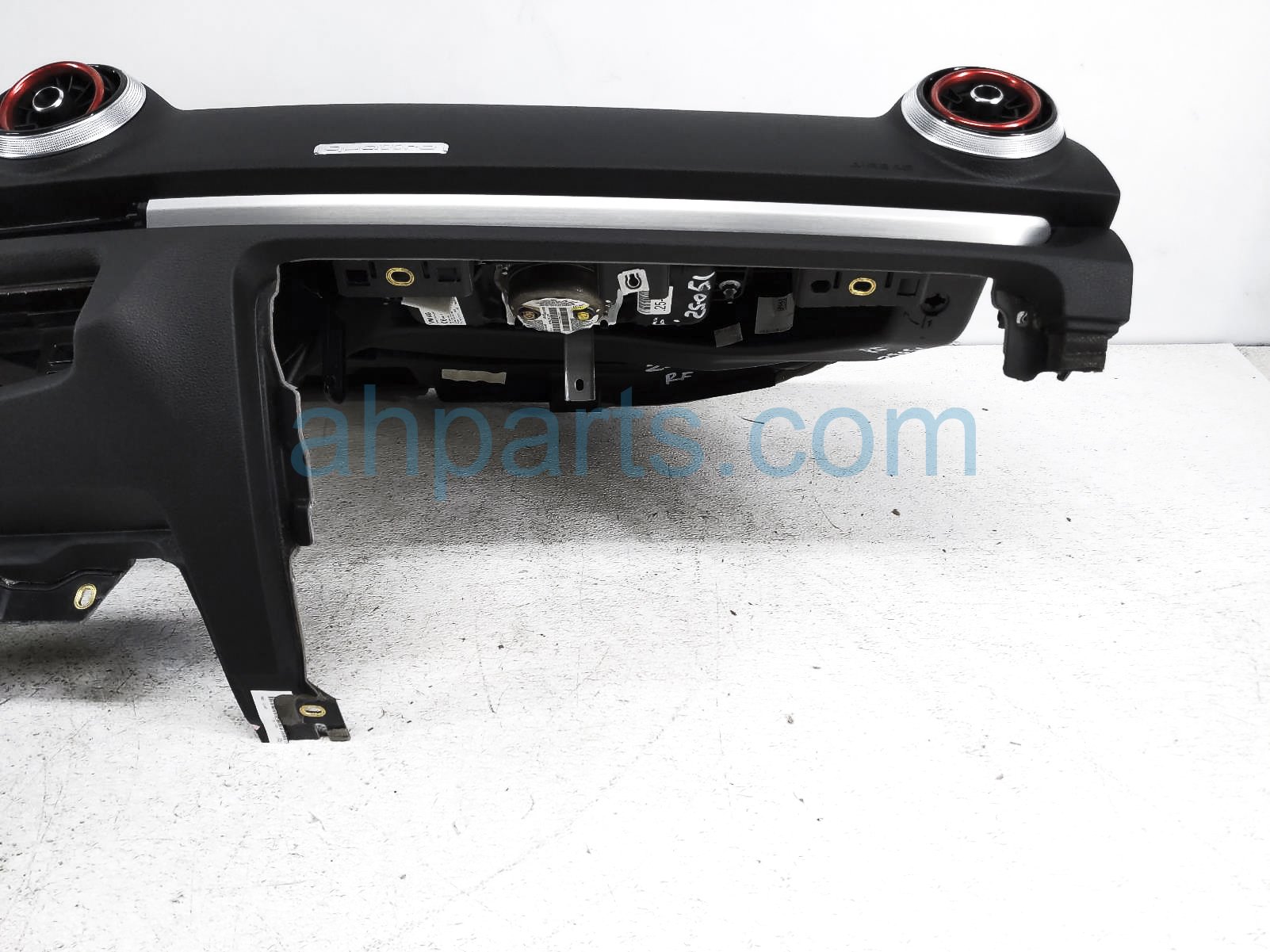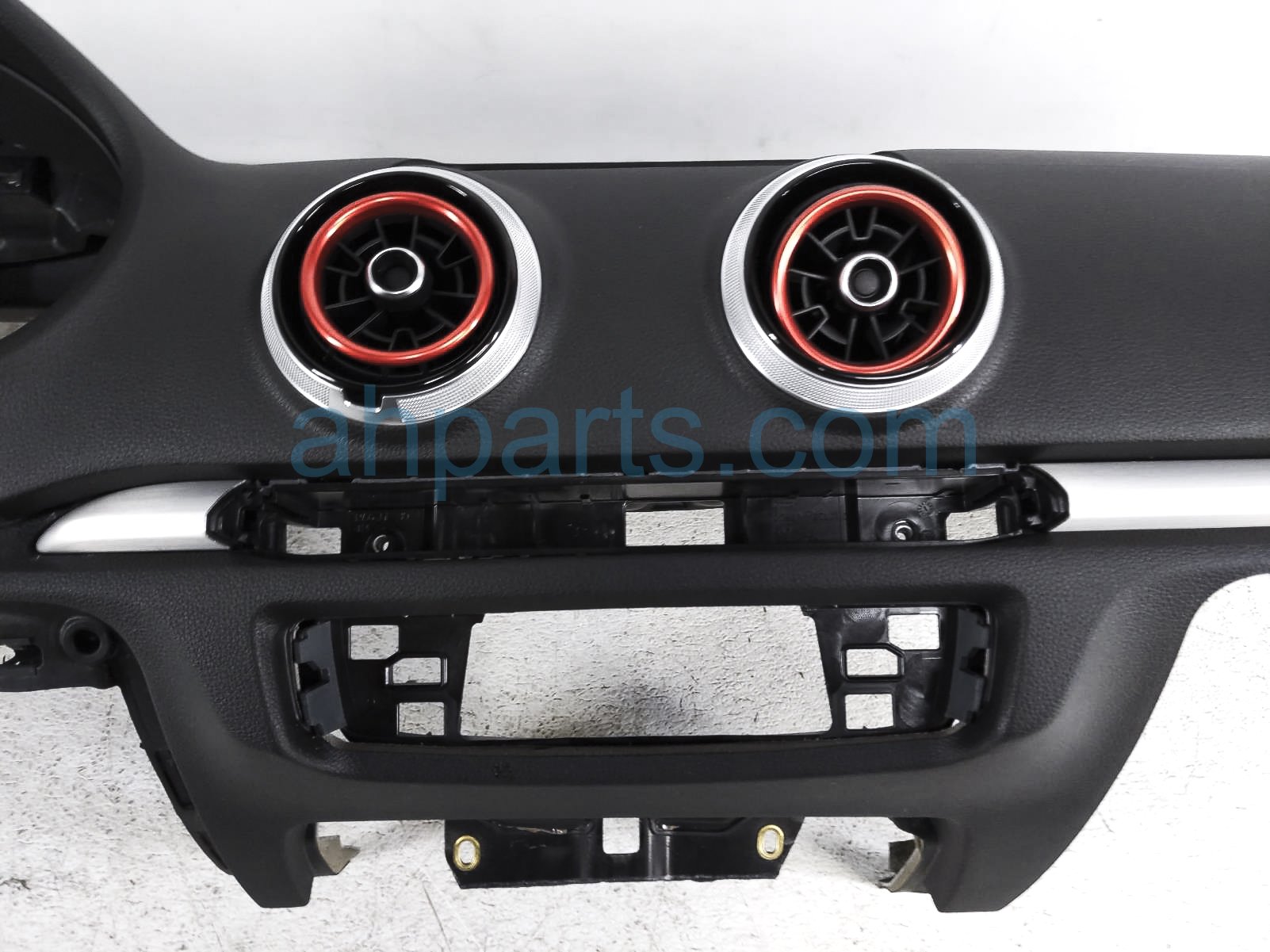 2018 Audi S3 Audi dashboard w/ airbag - blk prem plus* is a used item with a 1 year warranty. This OEM replacement dashboard w/ airbag - blk prem plus* is genuine and has part numbers 8V1-857-001-K-24A, 8V1857001K24A, 8V0-880-204-H, and 8V0880204H. This Audi part sells for $449. This item has the following note: 'Has red air vents trim *.'
