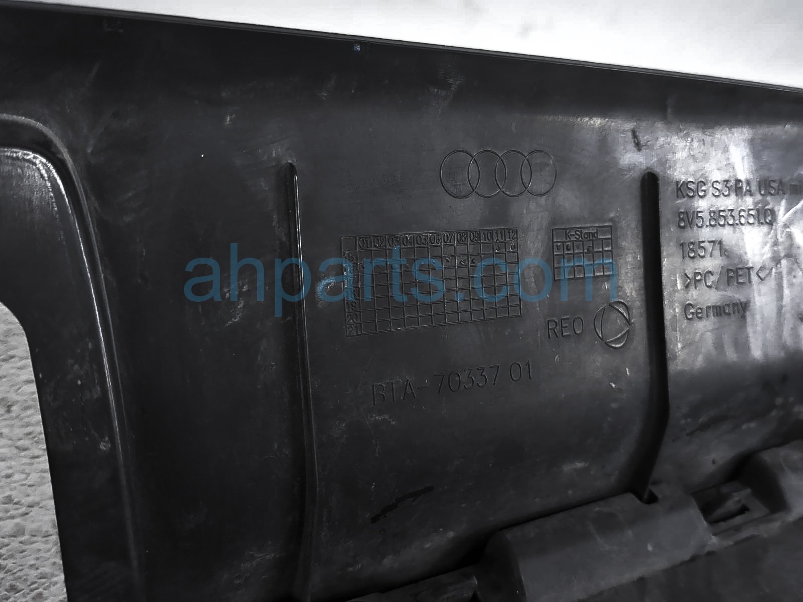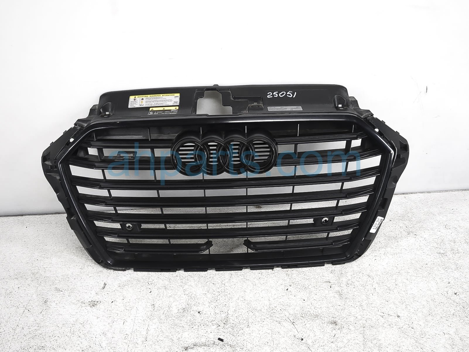 2018 Audi S3 Audi upper grille - black is a used item with a 1 year warranty. This OEM replacement upper grille - black is genuine and has part numbers 8V5-853-651-AA-FUQ, and 8V5853651AAFUQ. This Audi part sells for $350.