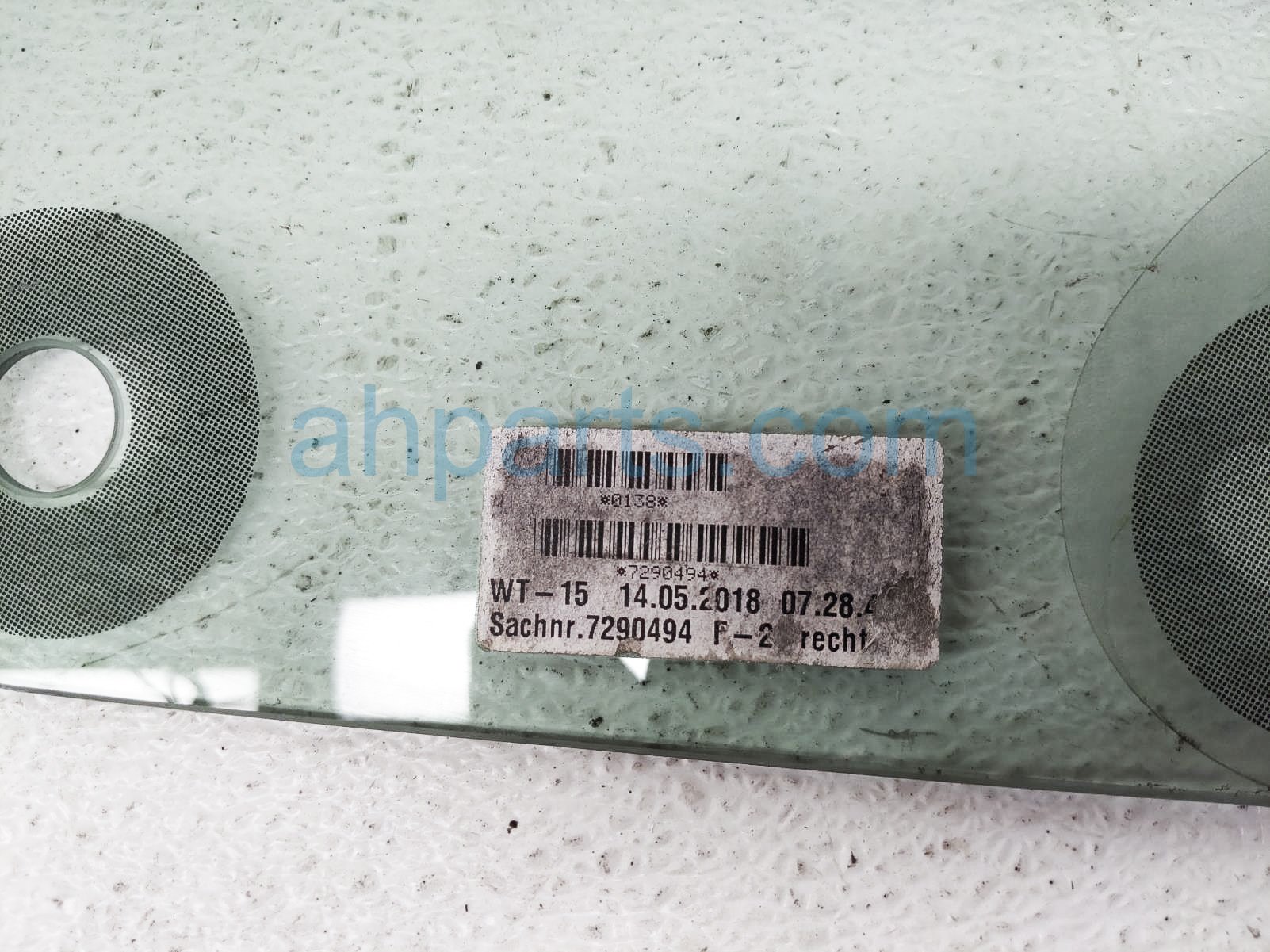 2018 BMW 230I passenger quarter window glass is a used item with a 1 year warranty. This OEM replacement passenger quarter window glass is genuine and has part numbers 51-35-7-290-494, and 51357290494. This BMW part sells for $125.