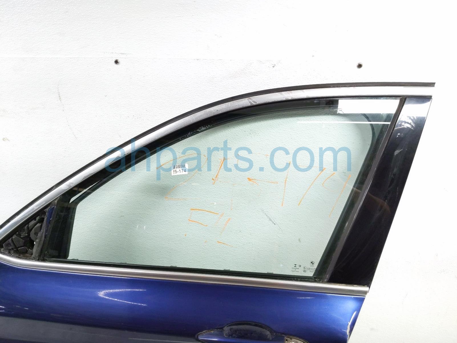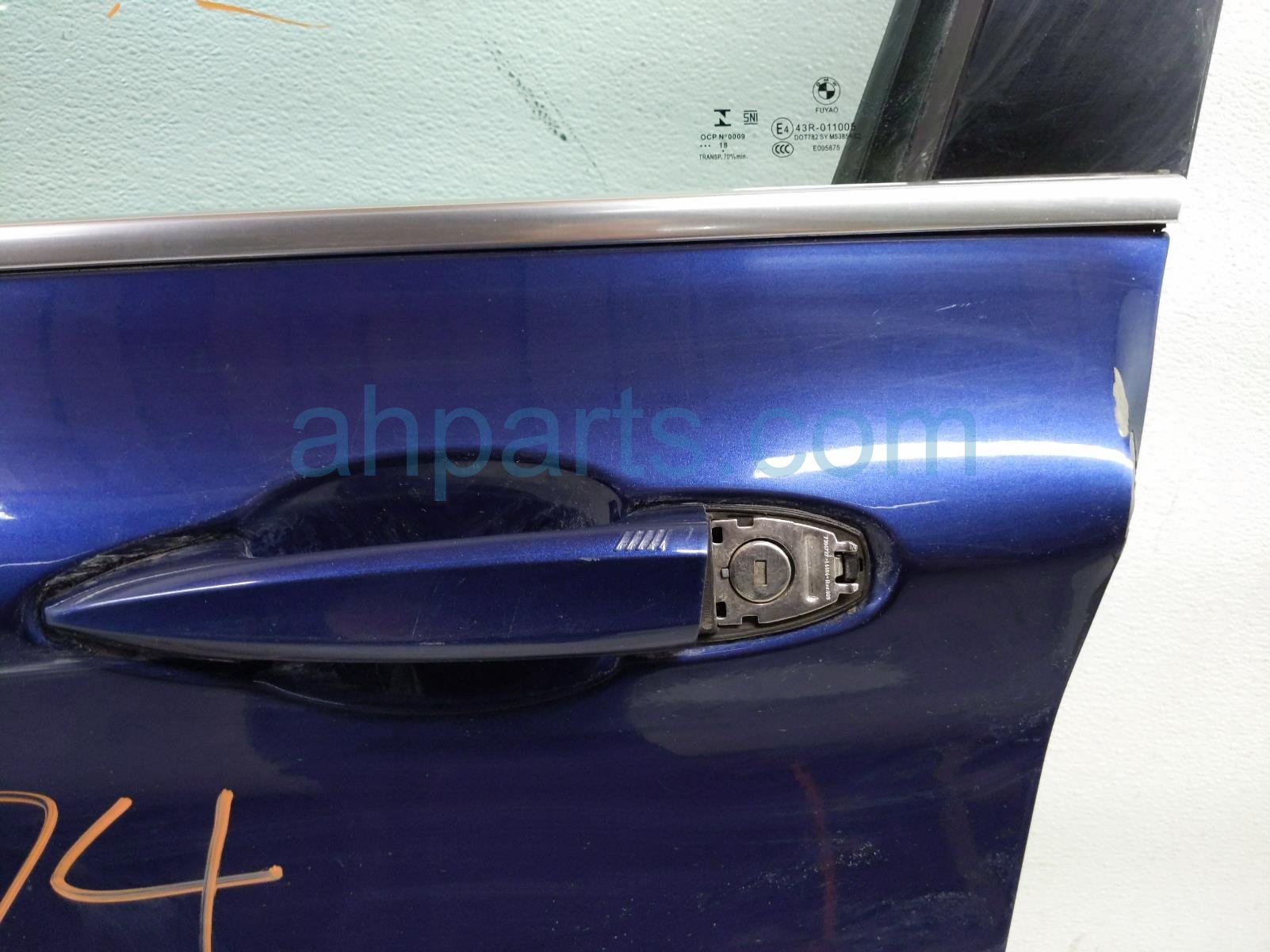 2018 BMW X1 front driver door - blue - no mirror/trim* is a used item with a 1 year warranty. This OEM replacement front driver door - blue - no mirror/trim* is genuine and has part numbers 41-00-7-414-369, 41007414369, 61-12-9-384-571, and 61129384571. This BMW part sells for $650. This item has the following note: 'Dented at edge near door handle & has some deep scuffs/scratches - grade c.'