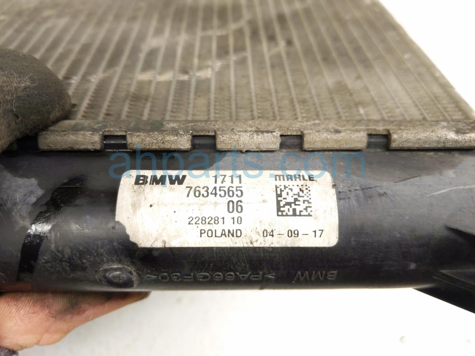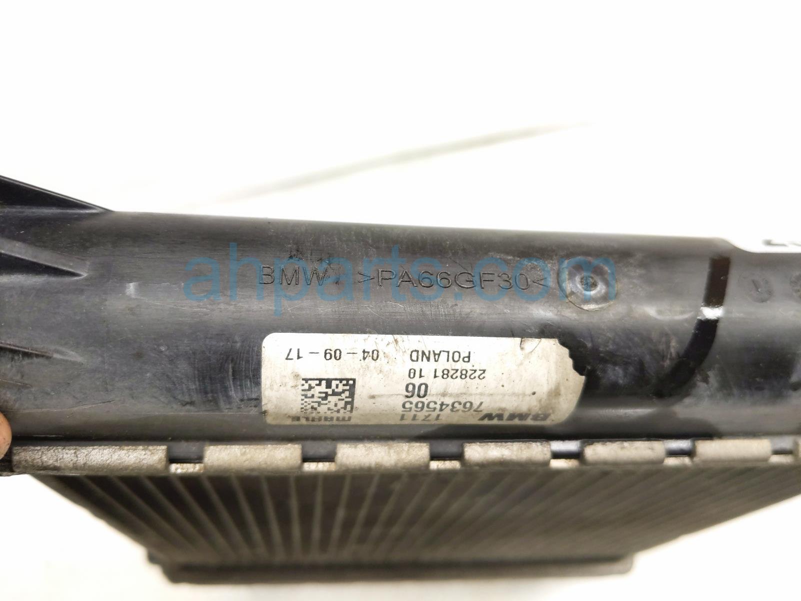 2018 BMW X1 secondary radiator is a used item with a 1 year warranty. This OEM replacement secondary radiator is genuine and has part numbers 17-11-7-634-565, and 17117634565. This BMW part sells for $175. This item has the following note: 'This item has some bent fins.'