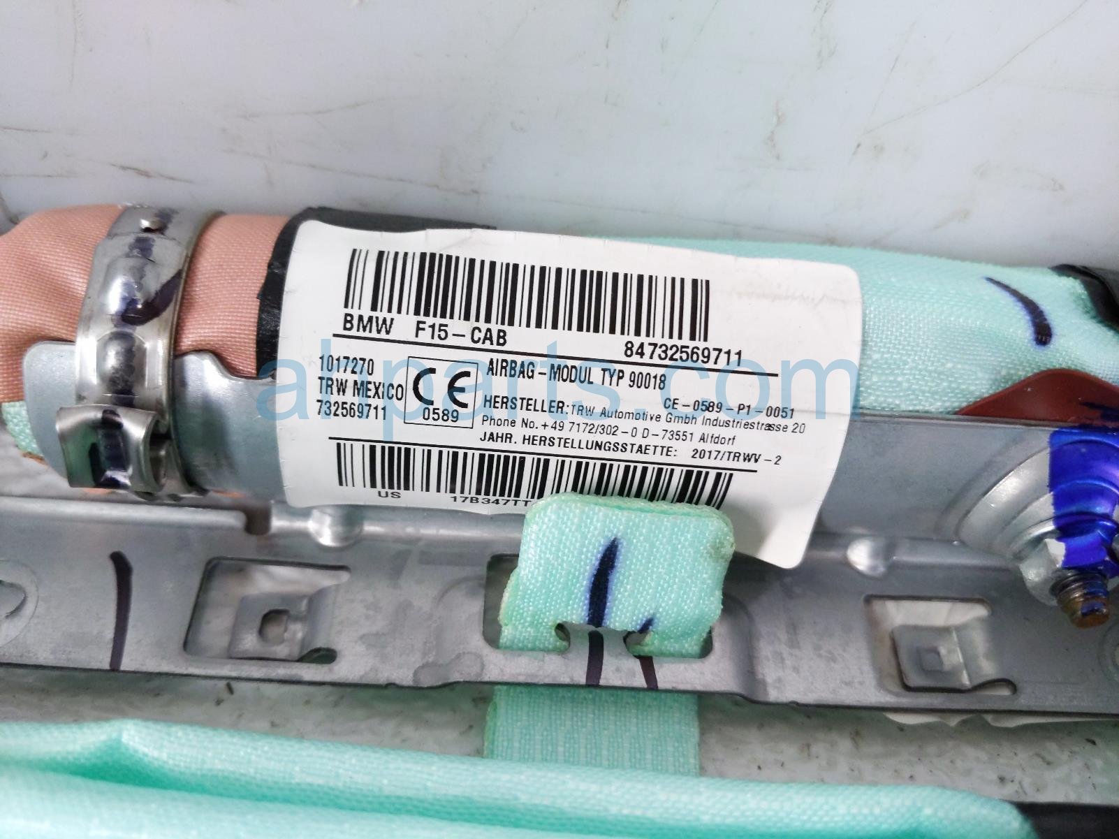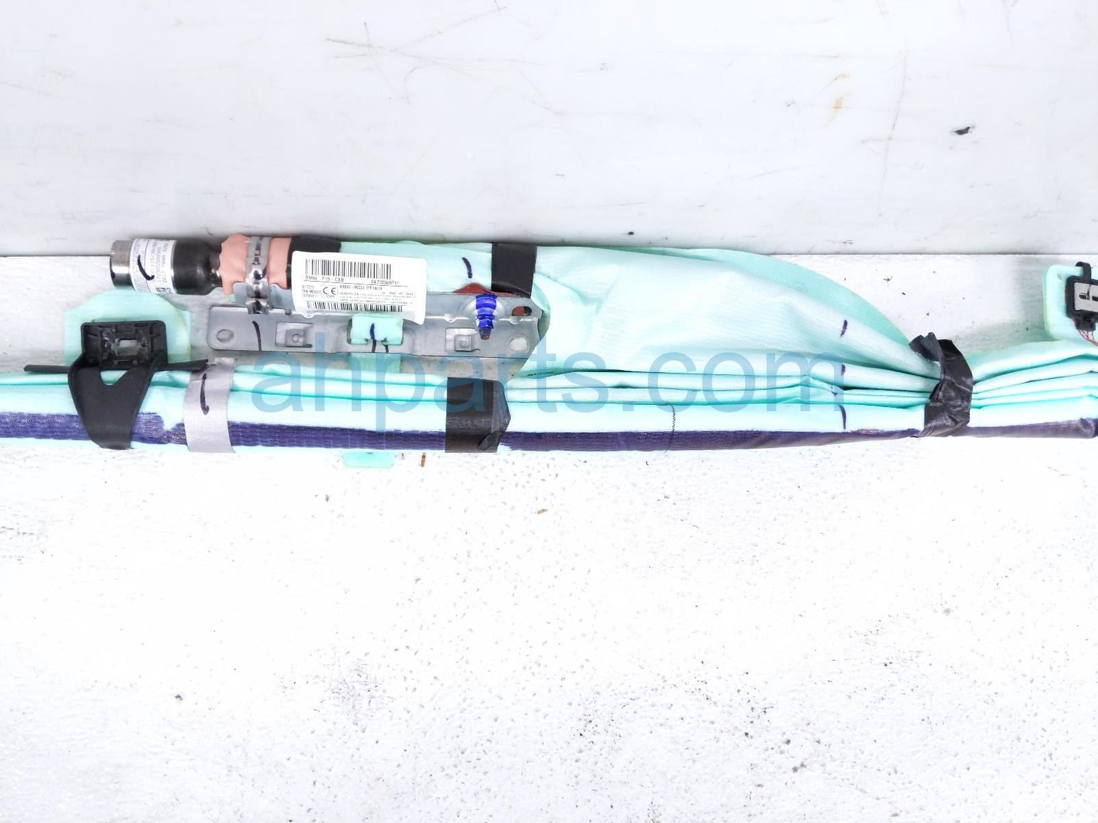 2018 BMW X5 driver roof curtain airbag is a used item with a 1 year warranty. This OEM replacement driver roof curtain airbag is genuine and has part numbers 72-12-7-325-697, and 72127325697. This BMW part is for sale (please call for pricing).