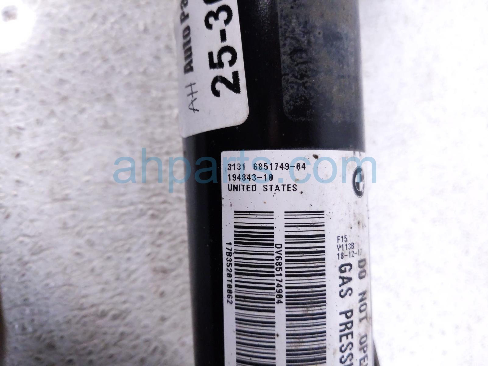 2018 BMW X5 front driver strut absorber + spring is a used item with a 1 year warranty. This OEM replacement front driver strut absorber + spring is genuine and has part numbers 31-30-6-851-879, 31306851879, 31-12-6-851-591, 31126851591, 31-33-6-865-132, 31336865132, and 31-30-6-851-879. This BMW part sells for $149.