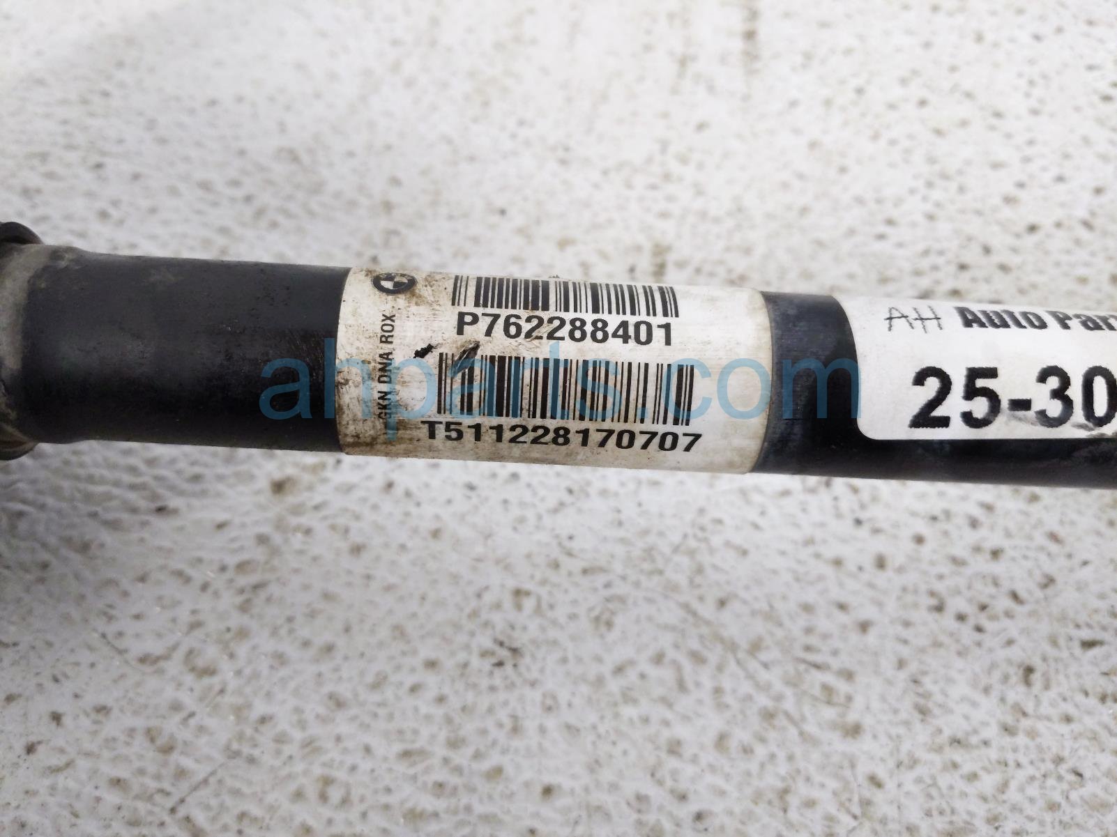 2018 BMW X5 front passenger cv axle drive shaft is a used item with a 1 year warranty. This OEM replacement front passenger cv axle drive shaft is genuine and has part numbers 31-60-7-545-126, and 31607545126. This BMW part sells for $99.