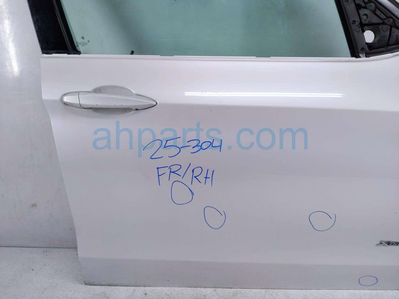 2018 BMW X5 front passenger door - white - no mirror/trim is a used item with a 1 year warranty. This OEM replacement front passenger door - white - no mirror/trim is genuine and has part numbers 51-33-7-470-632, 51337470632, 41-51-7-386-738, 41517386738, 61-12-9-325-959, and 61129325959. This BMW part sells for $900. This item has the following note: 'This item has some dings.'