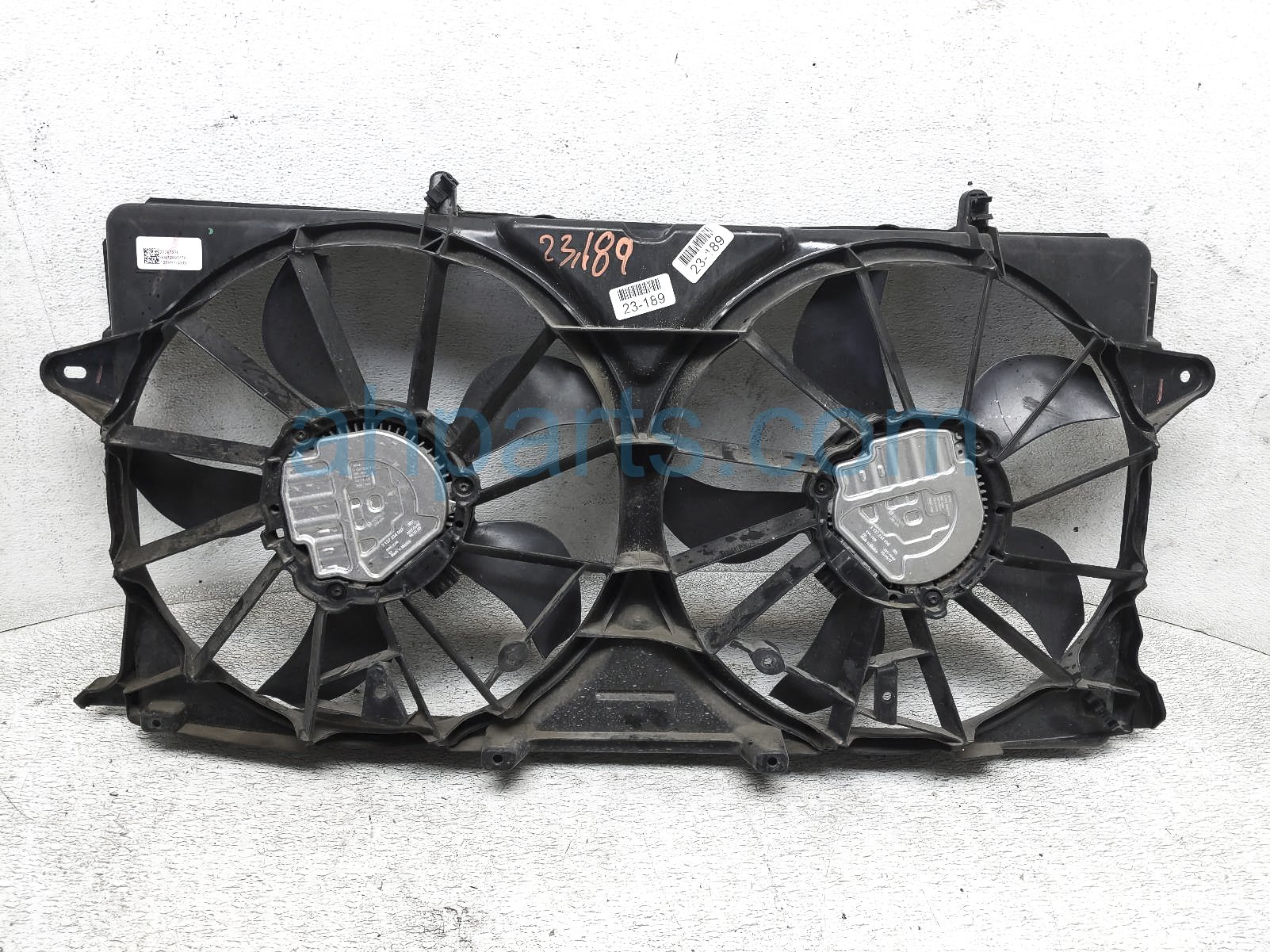 2018 Chevy Silverado 1500 cooling radiator fan assembly is a used item with a 1 year warranty. This OEM replacement cooling radiator fan assembly is genuine and has part numbers 23123635, 85565556, and 85565557. This Chevy part sells for $395. This item has the following note: 'This item has cracked area on top of shroud by passenger tab and crack on shroud by side tab on passenger - grade b.'
