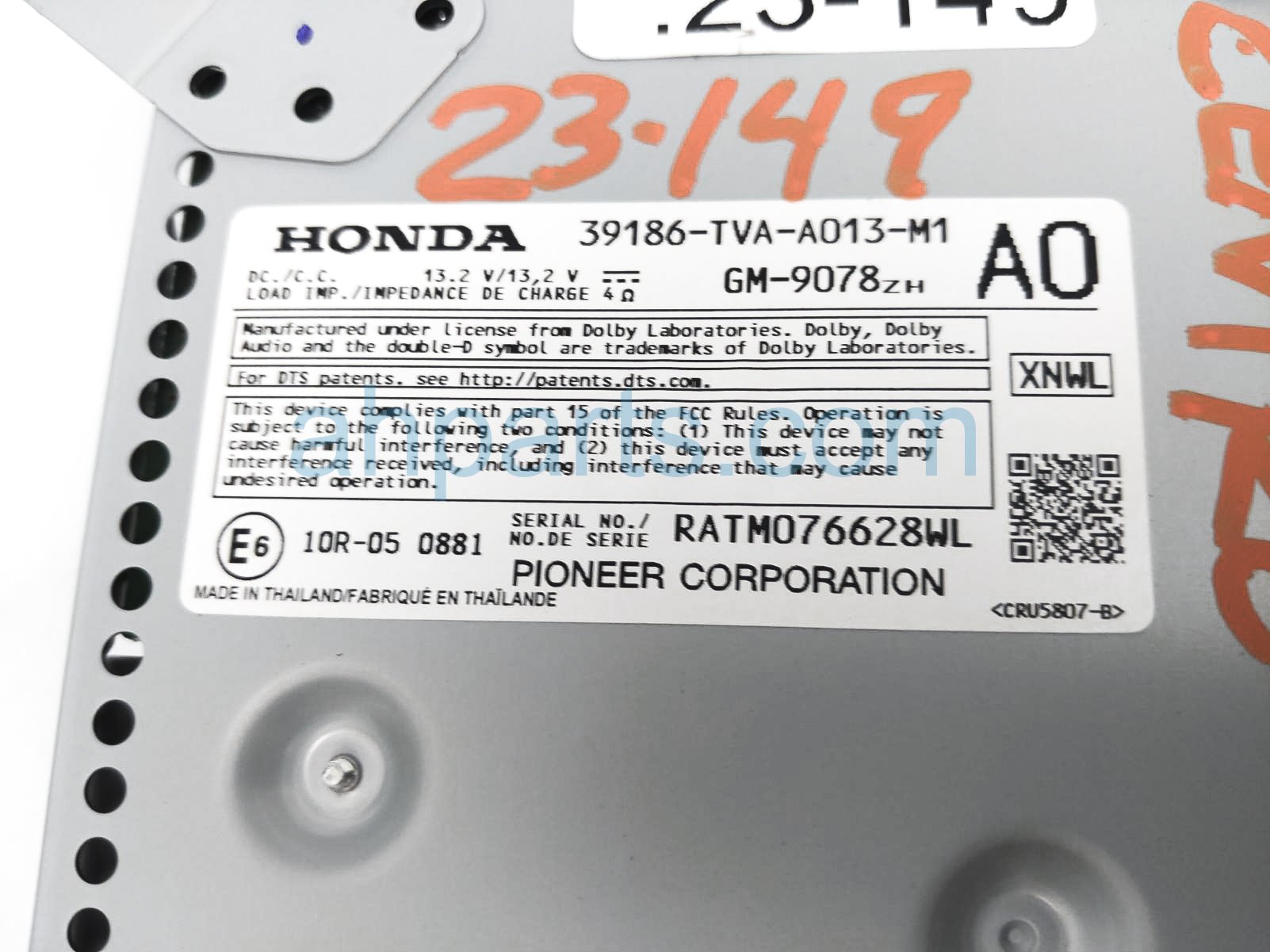 2018 Honda Accord audio radio receiver is a used item with a 1 year warranty. This OEM replacement audio radio receiver is genuine and has part numbers 39186-TVA-A013, and 39186TVAA013. This Honda part sells for $300.