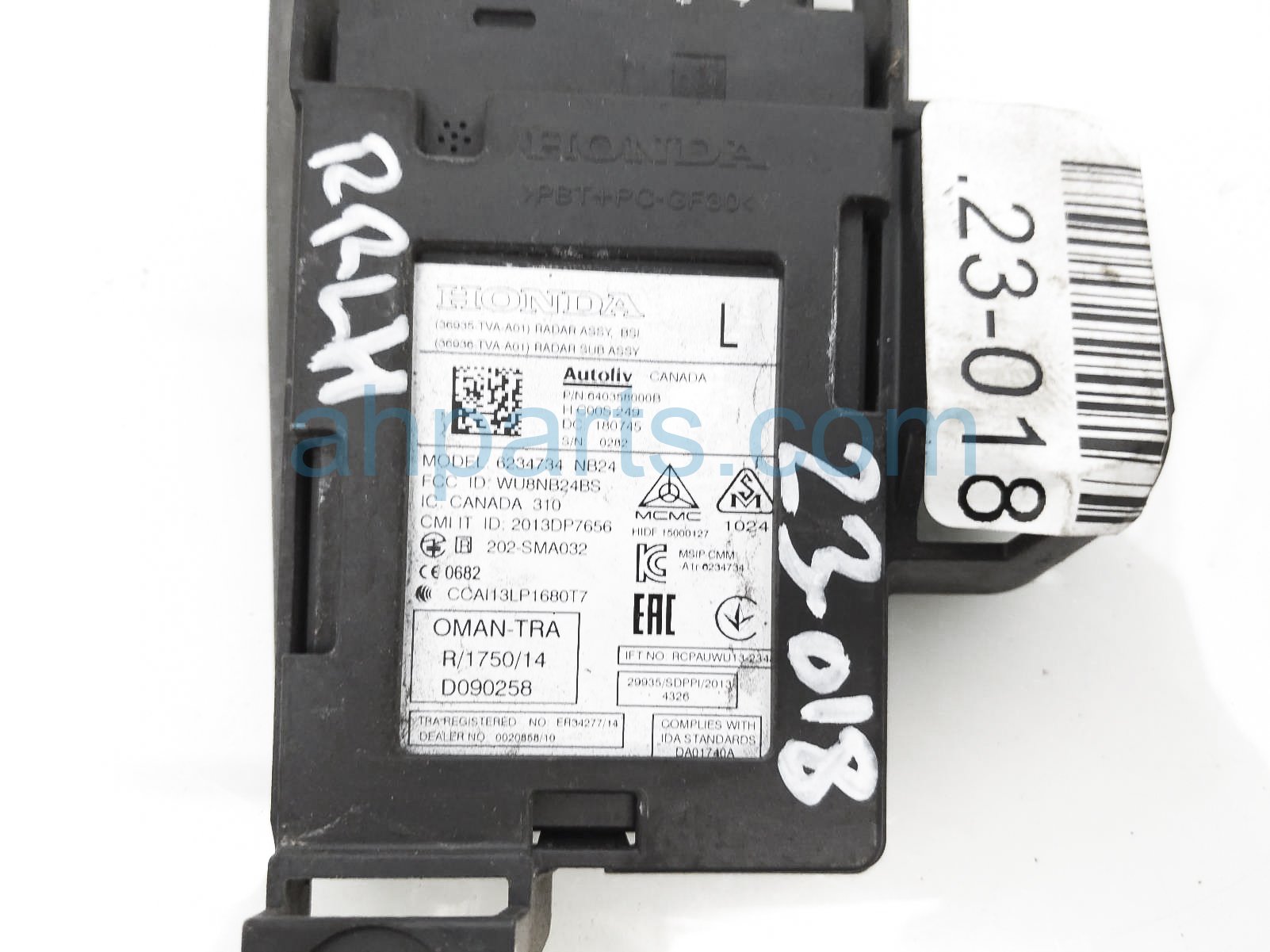 2018 Honda Accord driver blind spot radar assy is a used item with a 1 year warranty. This OEM replacement driver blind spot radar assy is genuine and has part numbers 36936-TVA-A01, 36936TVAA01, 36937-TVA-A01, and 36937TVAA01. This Honda part sells for $100.