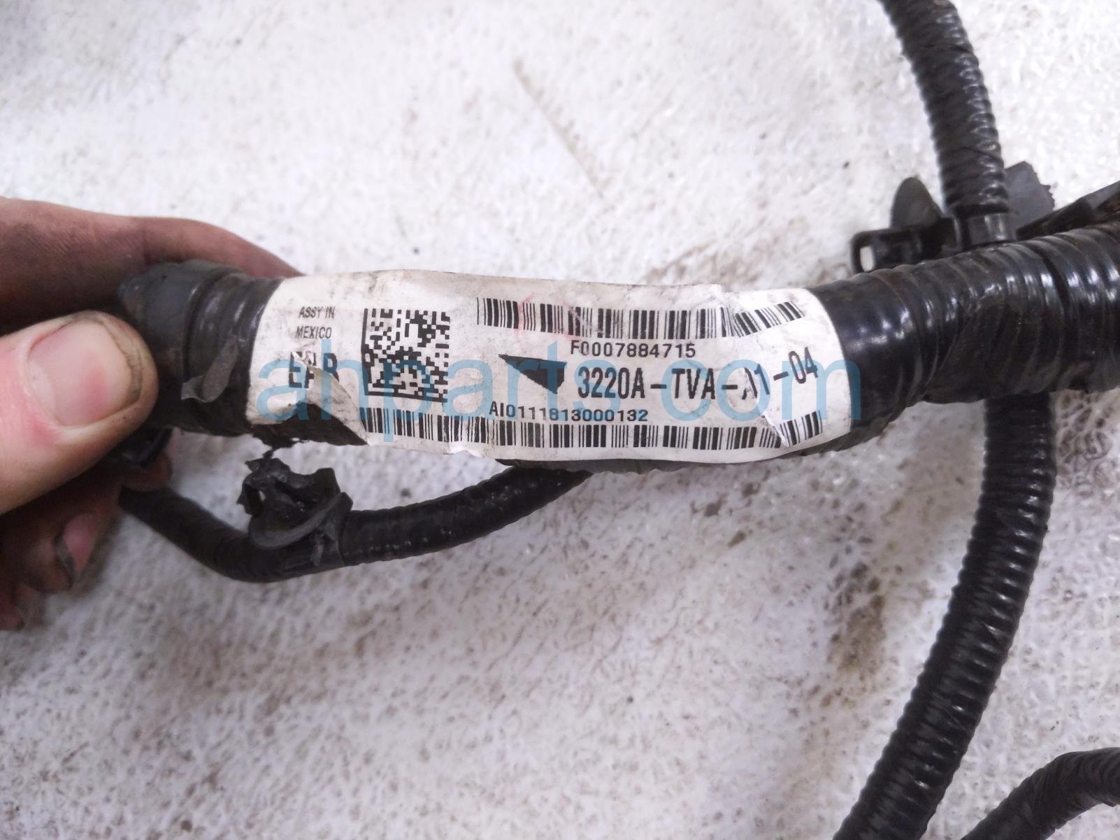 2018 Honda Accord engine room wire harness - lx 1.5t is a used item with a 1 year warranty. This OEM replacement engine room wire harness - lx 1.5t is genuine and has part numbers 3220A-TVA-A501, and 3220ATVAA501. This Honda part sells for $175. This item has the following note: 'Item has a couple cut pigtails.'