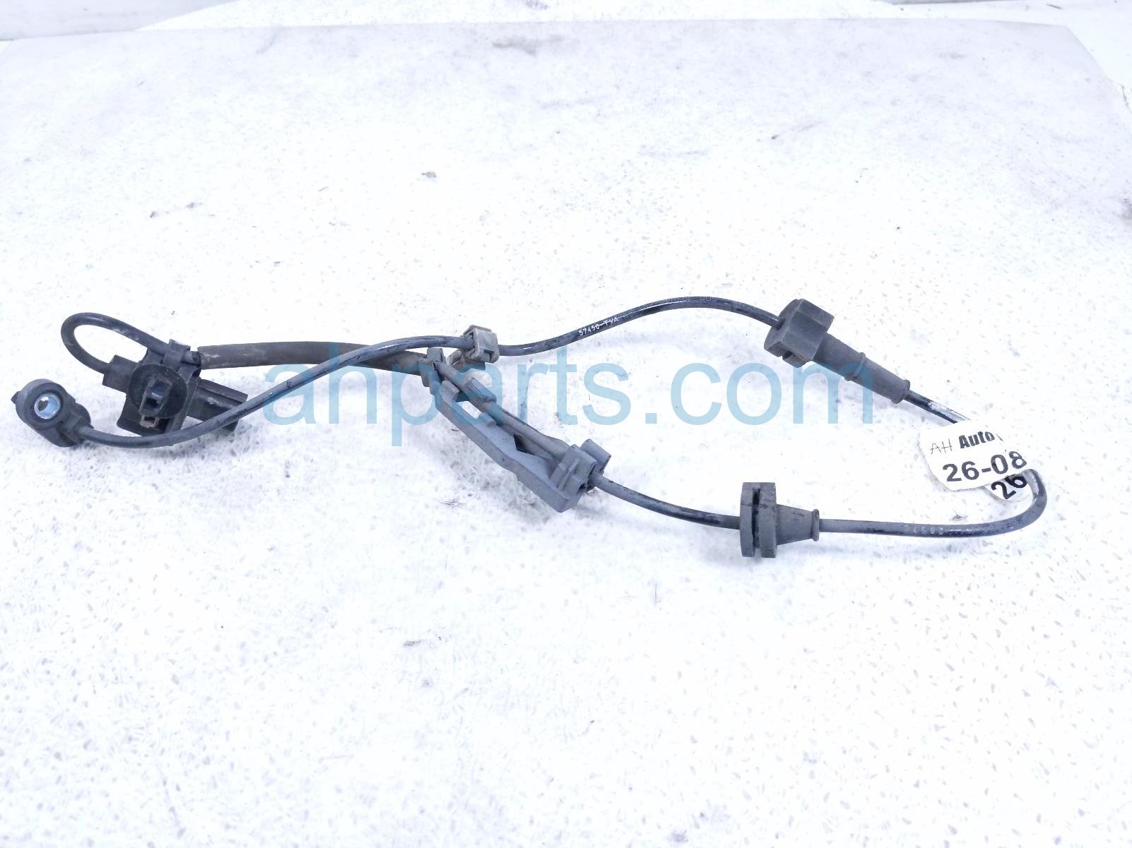 2018 Honda Accord front passenger abs wheel speed sensor is a used item with a 1 year warranty. This OEM replacement front passenger abs wheel speed sensor is genuine and has part numbers 57450-TVA-A03, and 57450TVAA03. This Honda part is for sale (please call for pricing).