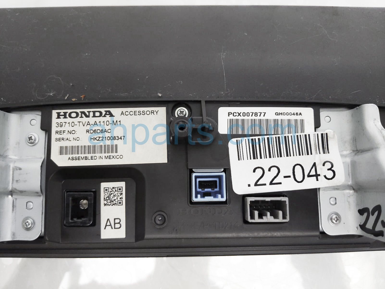 2018 Honda Accord upper display screen w/o navi is a used item with a 1 year warranty. This OEM replacement upper display screen w/o navi is genuine and has part numbers 39710-TVA-A110-M1, and 39710TVAA110M1. This Honda part sells for $125.