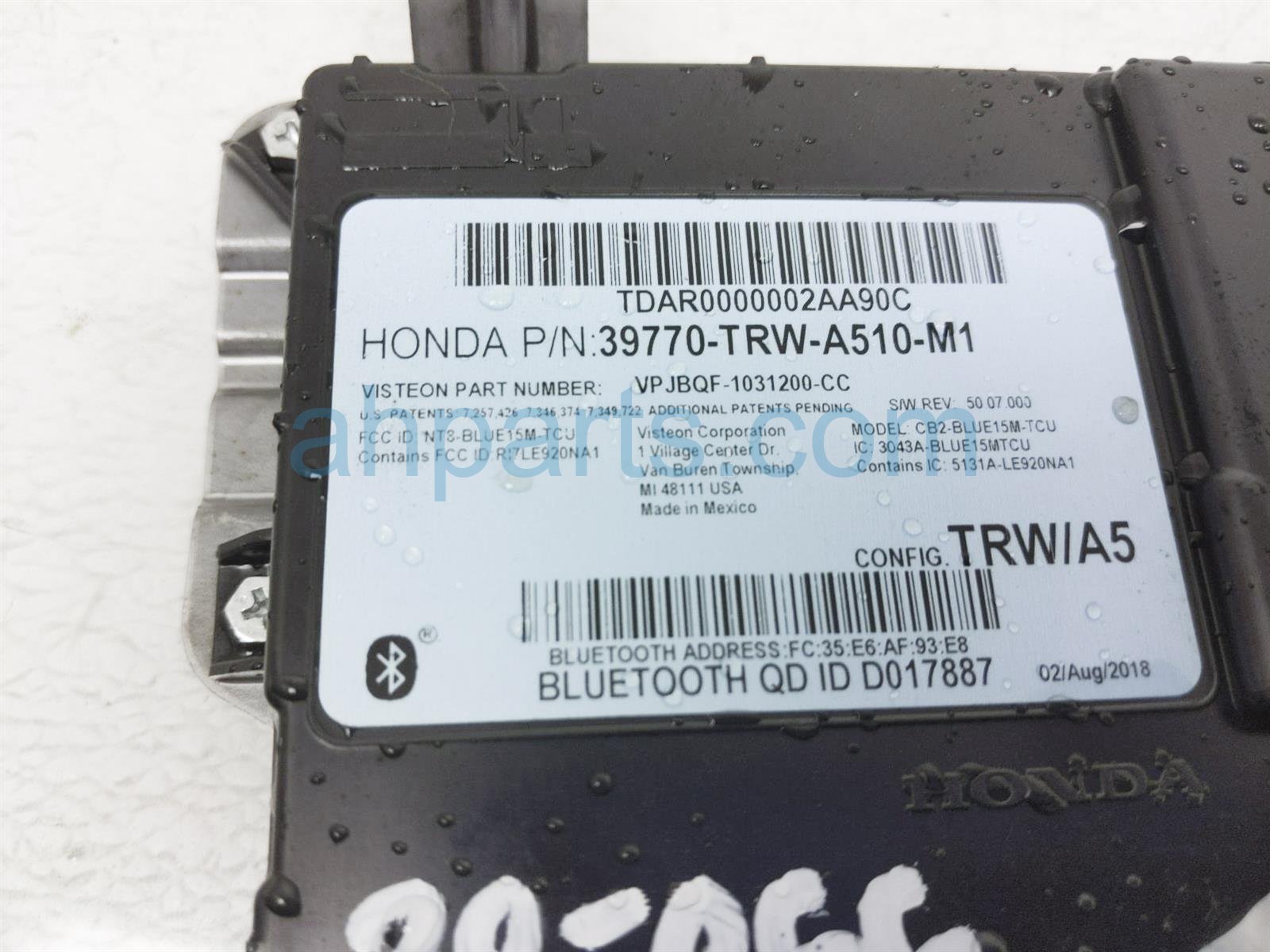 2018 Honda Clarity telematics control unit is a used item with a 1 year warranty. This OEM replacement telematics control unit is genuine and has part numbers 39770-TRW-A51, and 39770TRWA51. This Honda part sells for $75.