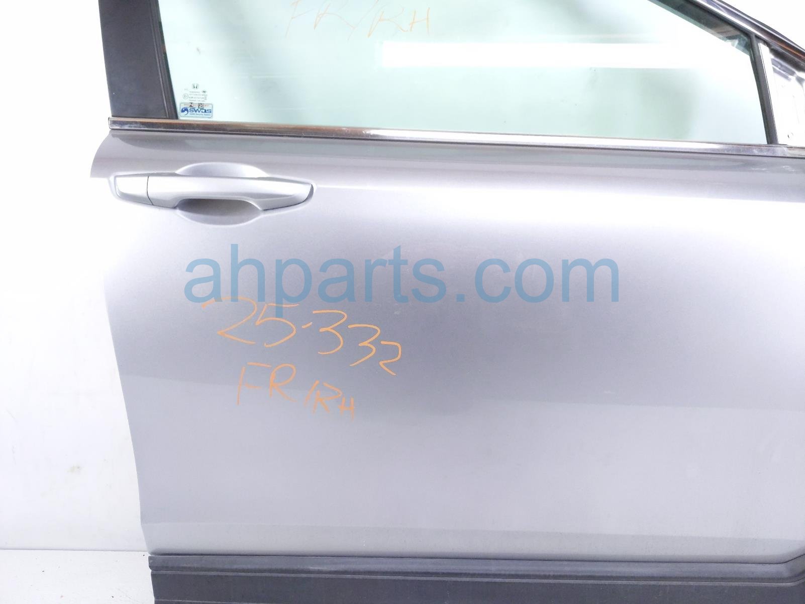 2018 Honda CR-V front passenger door - silver - no mirror/trim is a used item with a 1 year warranty. This OEM replacement front passenger door - silver - no mirror/trim is genuine and has part numbers 32752-TLA-A20, 32752TLAA20, 67010-TLA-A10ZZ, 67010TLAA10ZZ, 67111-TLA-A00ZZ, 67111TLAA00ZZ, 73300-TLA-A11, and 73300TLAA11. This Honda part is for sale (please call for pricing).