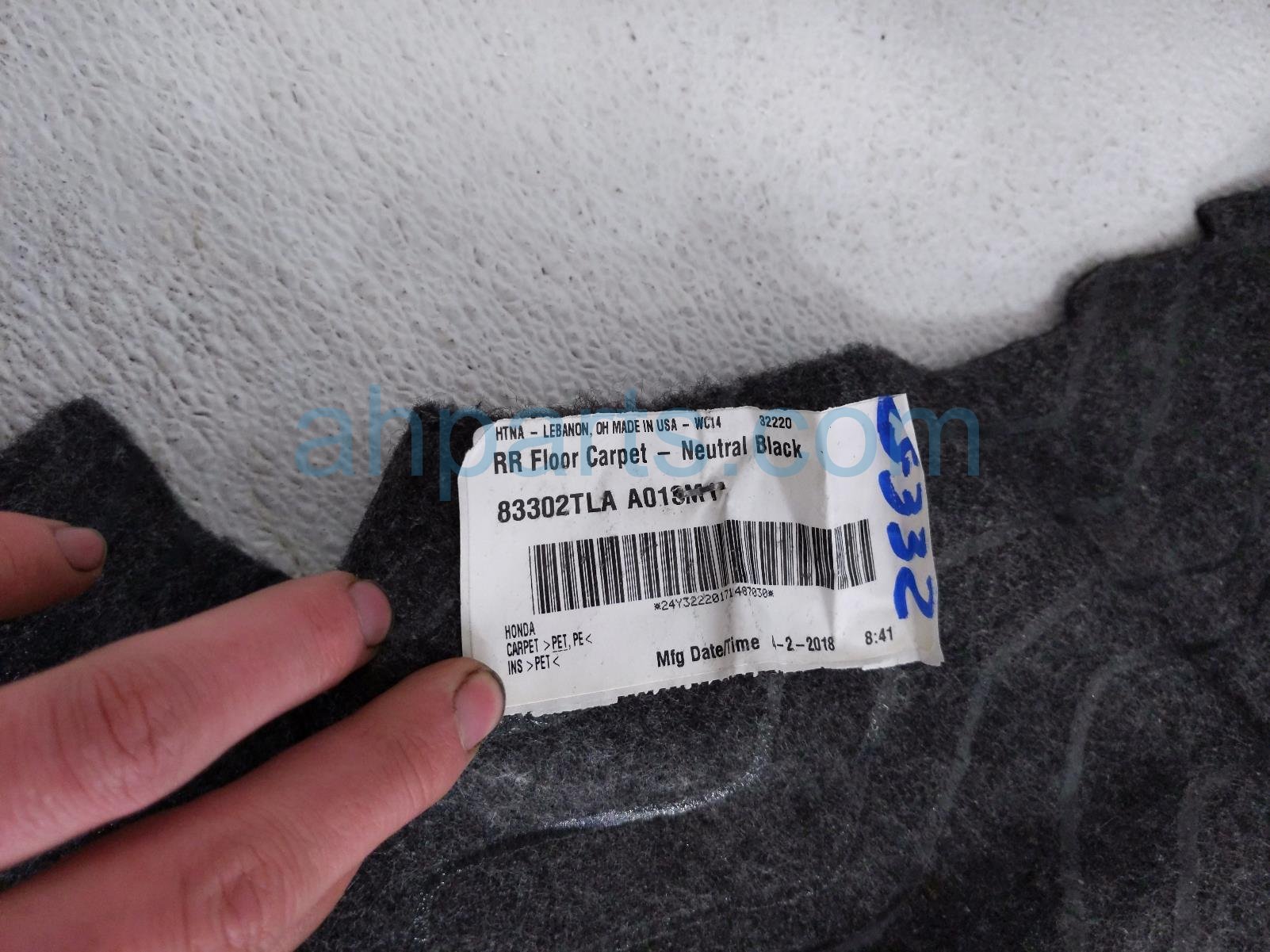 2018 Honda CR-V ground rear floor carpet - black is a used item with a 1 year warranty. This OEM replacement ground rear floor carpet - black is genuine and has part numbers 83302-TLA-A01ZA, and 83302TLAA01ZA. This Honda part is for sale (please call for pricing). This item has the following note: 'This item has some stains on the carpet.'