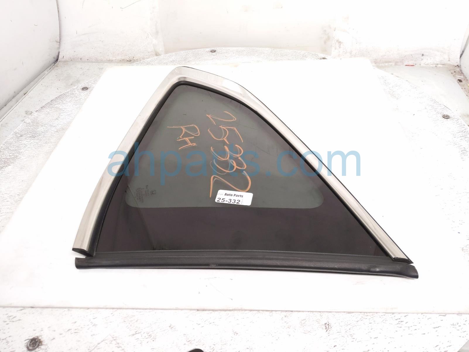 2018 Honda CR-V passenger quarter window glass is a used item with a 1 year warranty. This OEM replacement passenger quarter window glass is genuine and has part numbers 73512-TLA-A01, and 73512TLAA01. This Honda part is for sale (please call for pricing).