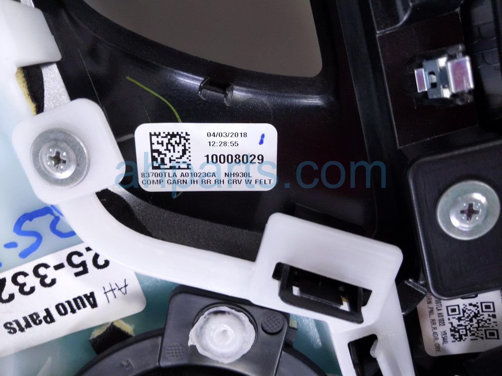 2018 Honda CR-V rear trim liner rear passenger interior door panel - black is a used item with a 1 year warranty. This OEM replacement rear trim liner rear passenger interior door panel - black is genuine and has part numbers 83711-TLA-A11ZB, and 83711TLAA11ZB. This Honda part is for sale (please call for pricing).