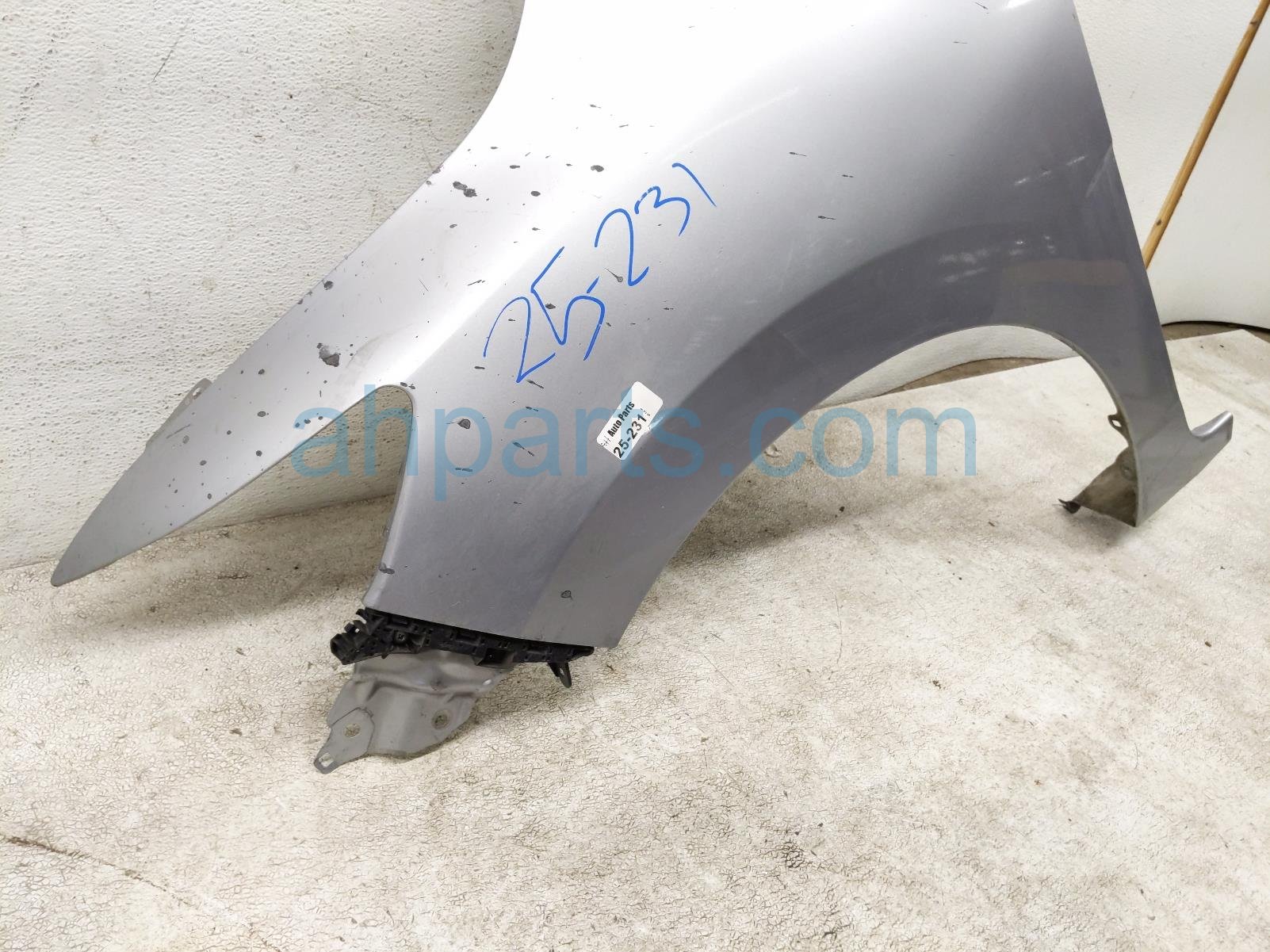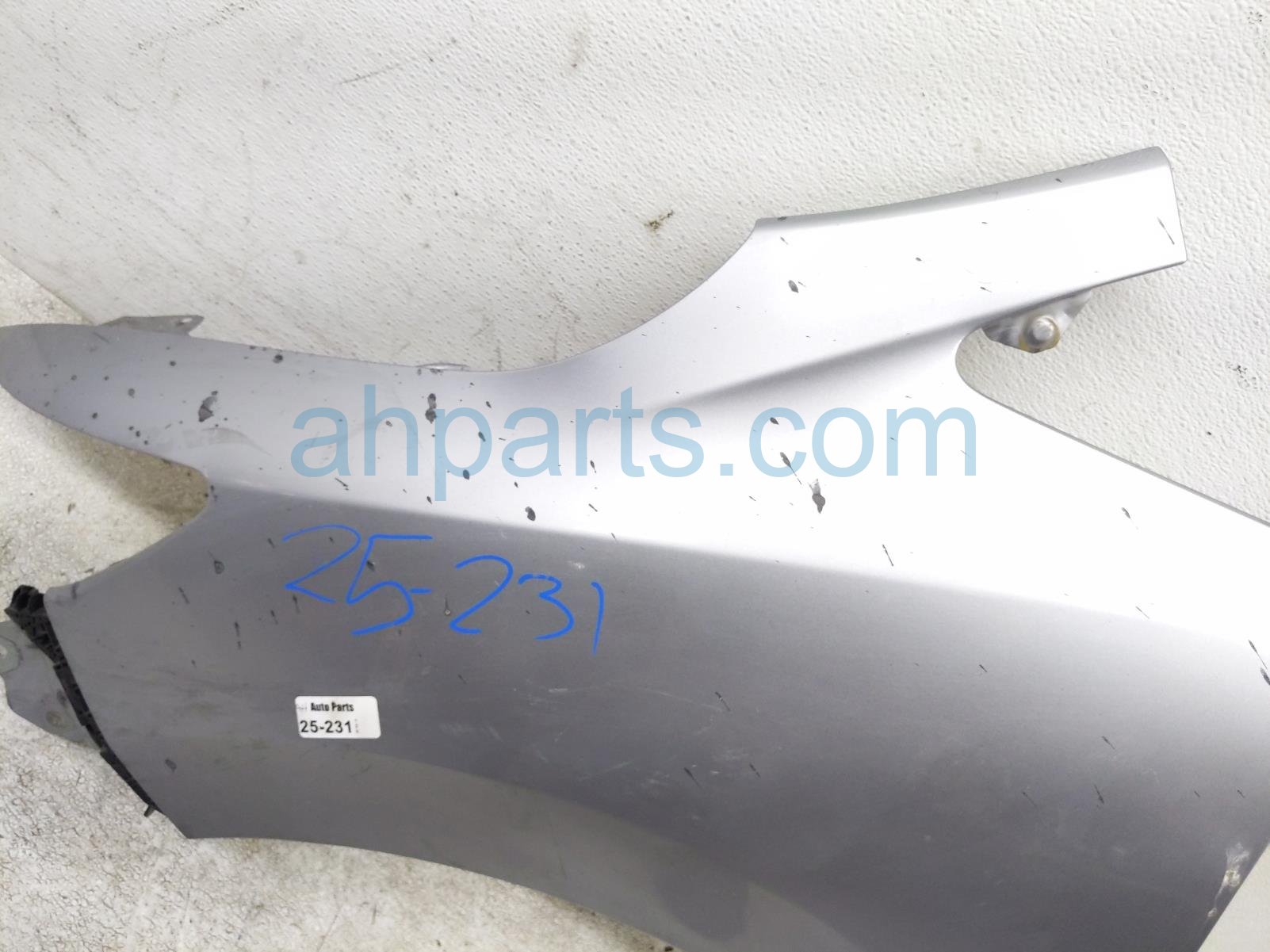 2018 Honda FIT front driver fender - silver * is a used item with a 1 year warranty. This OEM replacement front driver fender - silver * is genuine and has part numbers 60261-T5R-A91ZZ, and 60261T5RA91ZZ. This Honda part sells for $125. This item has the following note: 'Some paint corrosion from battery acid.'