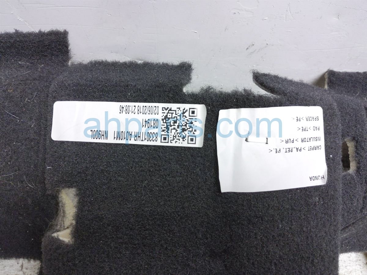 2018 Honda Odyssey ground front floor carpet - black is a used item with a 1 year warranty. This OEM replacement ground front floor carpet - black is genuine and has part numbers 83301-THR-A01ZB, and 83301THRA01ZB. This Honda part sells for $95.