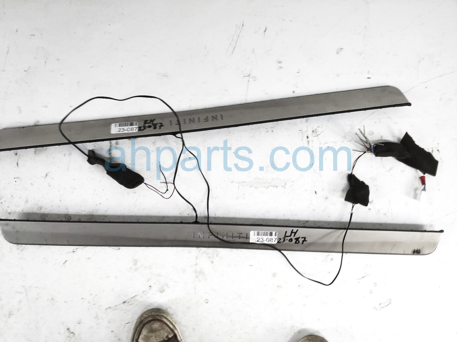2018 Infiniti Q60 lh+rh illuminated door sill panels is a used item with a 1 year warranty. This OEM replacement lh+rh illuminated door sill panels is genuine and has part numbers T99G6-5CH01, and T99G65CH01. This Infiniti part sells for $150. This item has the following note: 'This item needs the wires spliced into the wiring harness.'
