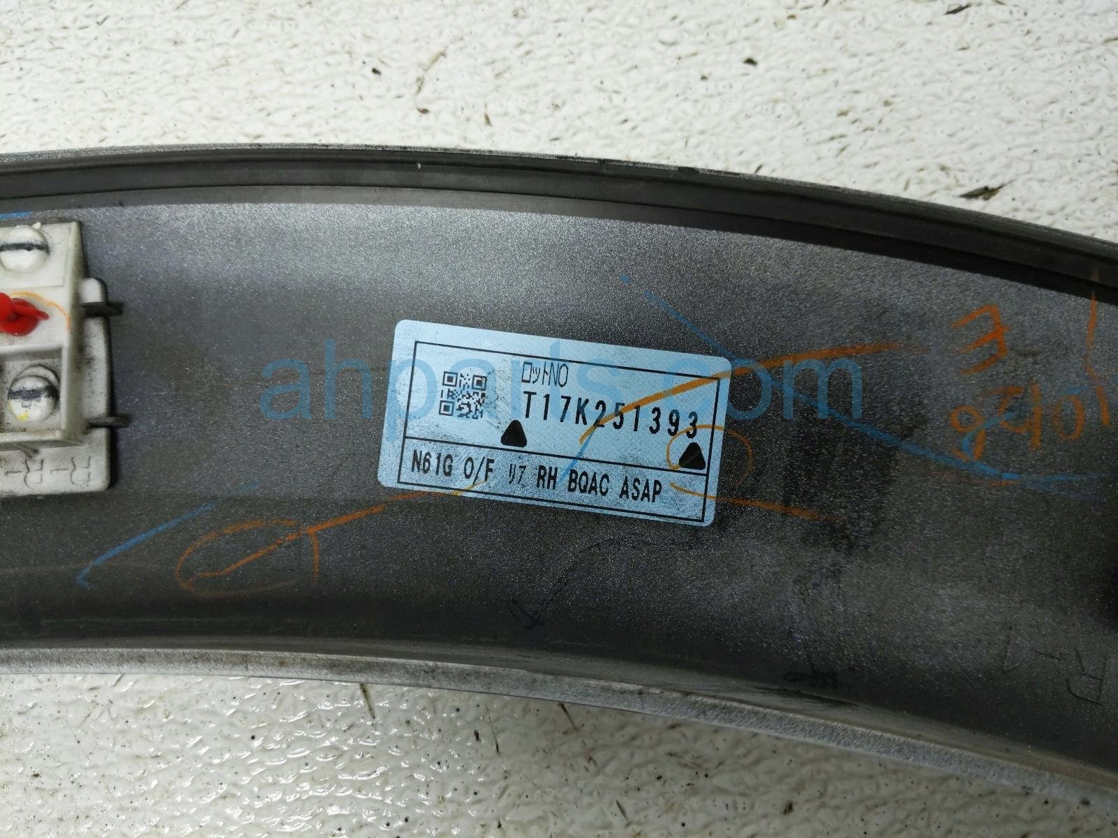 2018 Infiniti QX80 rear passenger quarter panel flare - white is a used item with a 1 year warranty. This OEM replacement rear passenger quarter panel flare - white is genuine and has part numbers 93828-6GW2B, and 938286GW2B. This Infiniti part sells for $125. This item has the following note: 'This item has some scuffs/chips on the paint.'