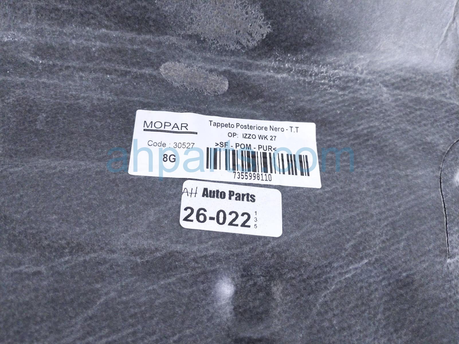 2018 Jeep Renegade ground rear floor carpet - black is a used item with a 1 year warranty. This OEM replacement ground rear floor carpet - black is genuine and has part numbers 5UW21LXHAA. This Jeep part is for sale (please call for pricing). This item has the following note: 'This item has some stains.'