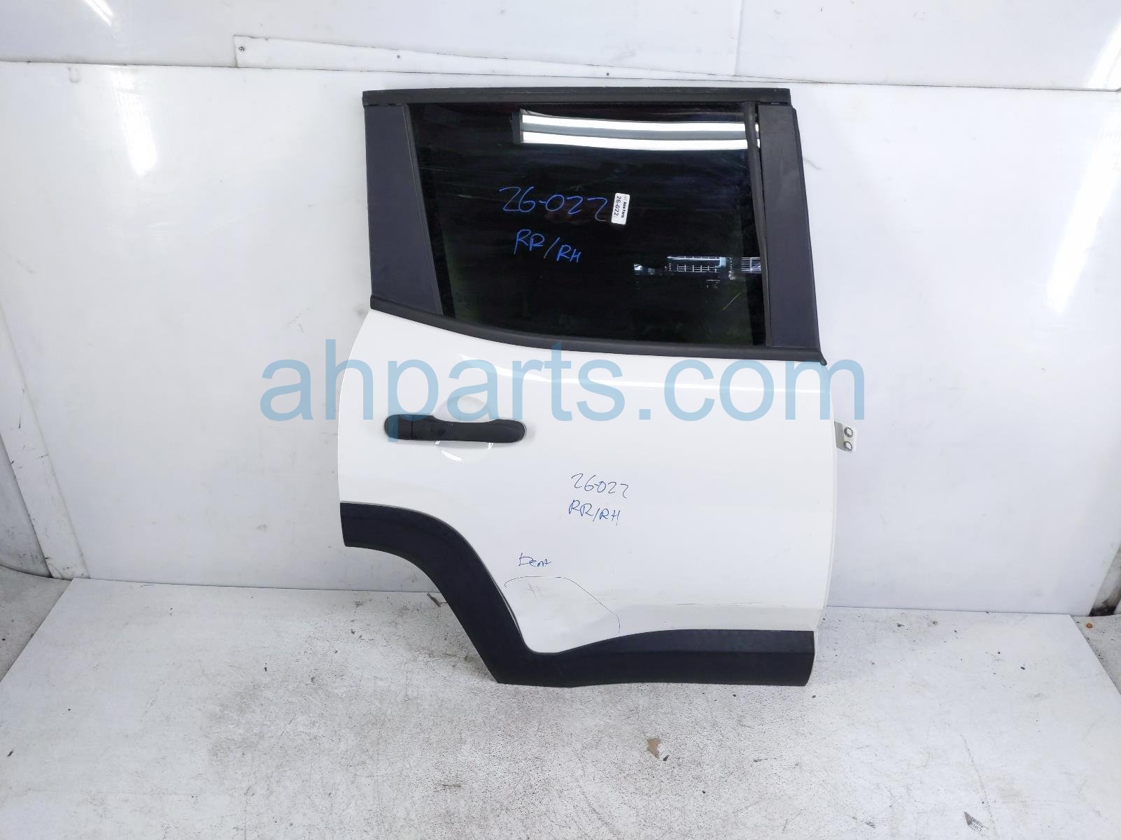 2018 Jeep Renegade rear passenger door - white - no inside trim is a used item with a 1 year warranty. This OEM replacement rear passenger door - white - no inside trim is genuine and has part numbers 68320674AA, and 68256340AA. This Jeep part is for sale (please call for pricing). This item has the following note: 'This item is dented and scratched.'
