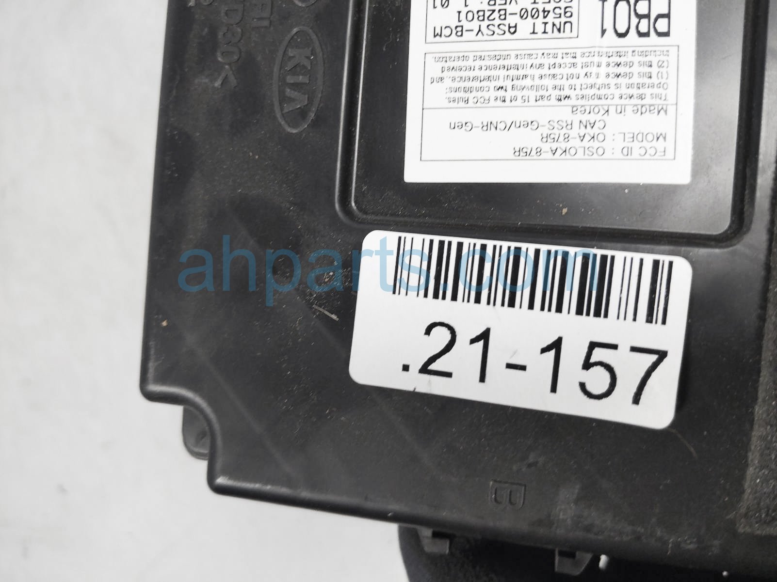 2018 Kia Soul body control module unit is a used item with a 1 year warranty. This OEM replacement body control module unit is genuine and has part numbers 95400-B2BO1, and 95400B2BO1. This Kia part sells for $49.