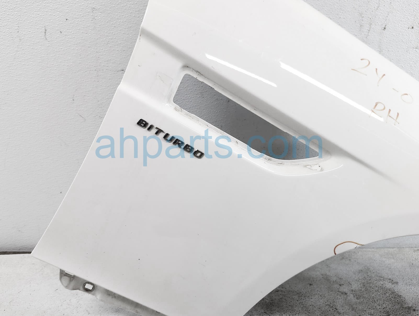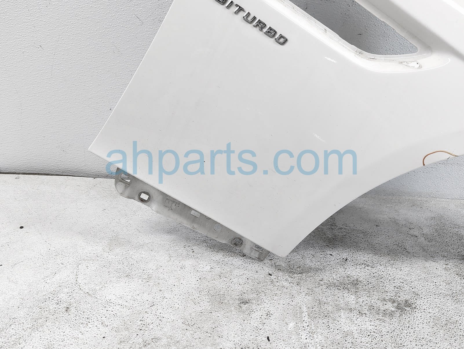 2018 Mercedes SLC43 front passenger fender - white is a used item with a 1 year warranty. This OEM replacement front passenger fender - white is genuine and has part numbers 172-880-02-07, and 1728800207. This Mercedes part sells for $100. This item has the following note: 'This item has a ding on wheel arch area, has a crack front section, scratches by pillar area - grade b.'