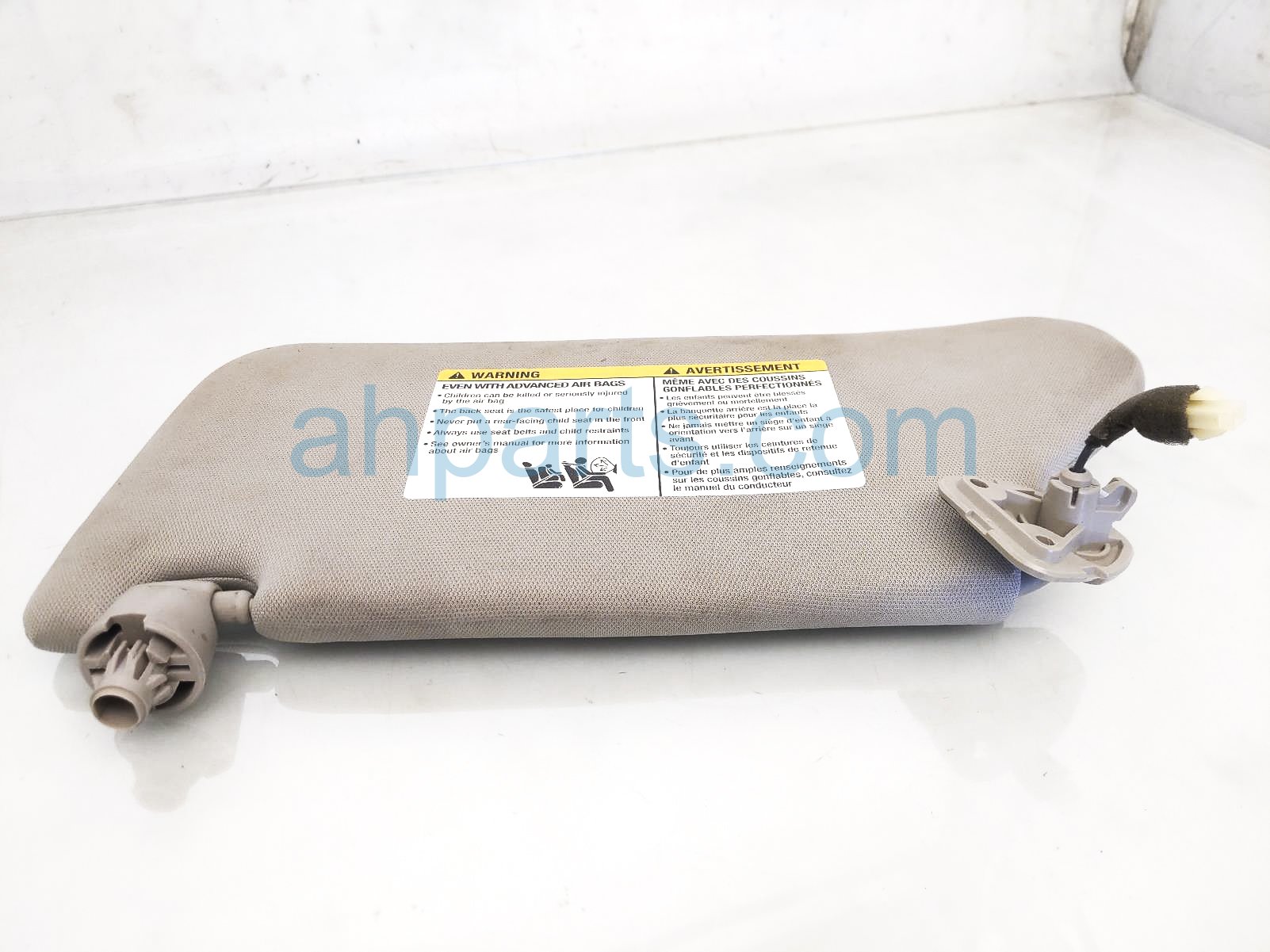 2018 Nissan Altima passenger sun visor - grey is a used item with a 1 year warranty. This OEM replacement passenger sun visor - grey is genuine and has part numbers 96400-9HT2A, and 964009HT2A. This Nissan part sells for $20. This item has the following note: 'The sunvisor is a little dirty with small tear and the mounting tab is cracked.'