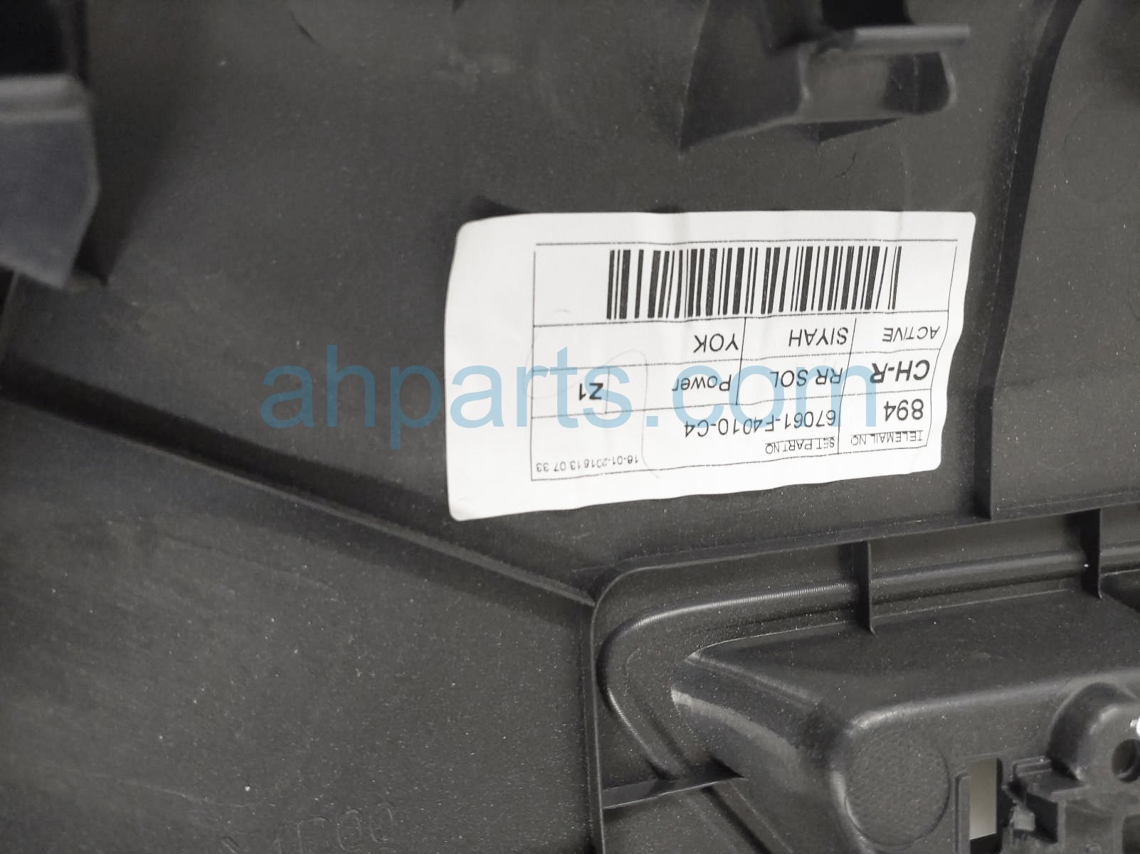 2018 Toyota C-HR rear trim liner rear driver interior door panel - black is a used item with a 1 year warranty. This OEM replacement rear trim liner rear driver interior door panel - black is genuine and has part numbers 67640-F4010-C6, and 67640F4010C6. This Toyota part sells for $95.