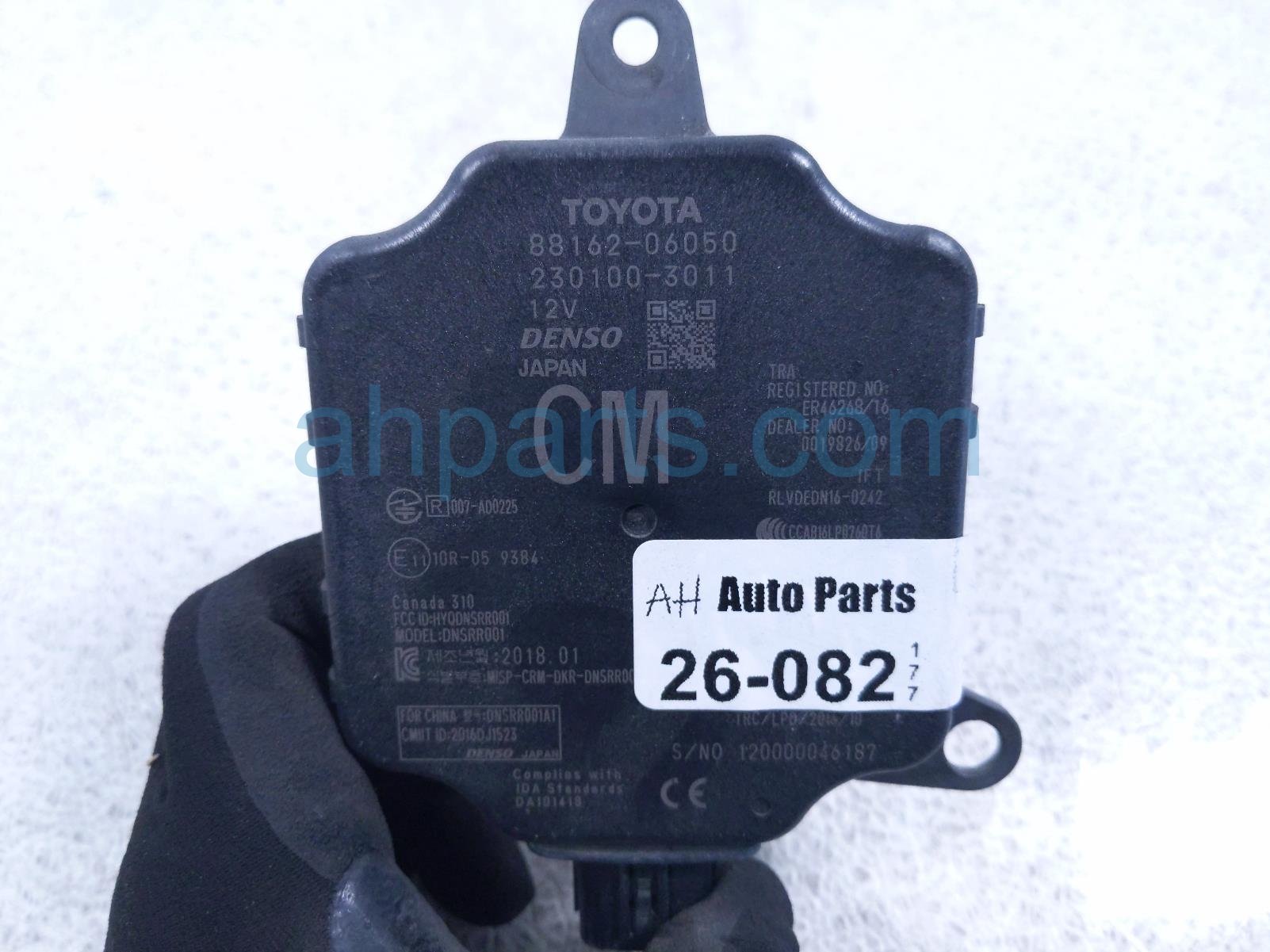 2018 Toyota Camry rear driver blind spot radar unit is a used item with a 1 year warranty. This OEM replacement rear driver blind spot radar unit is genuine and has part numbers 88162-06050, and 8816206050. This Toyota part is for sale (please call for pricing).