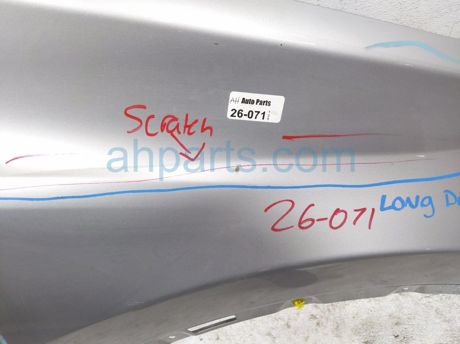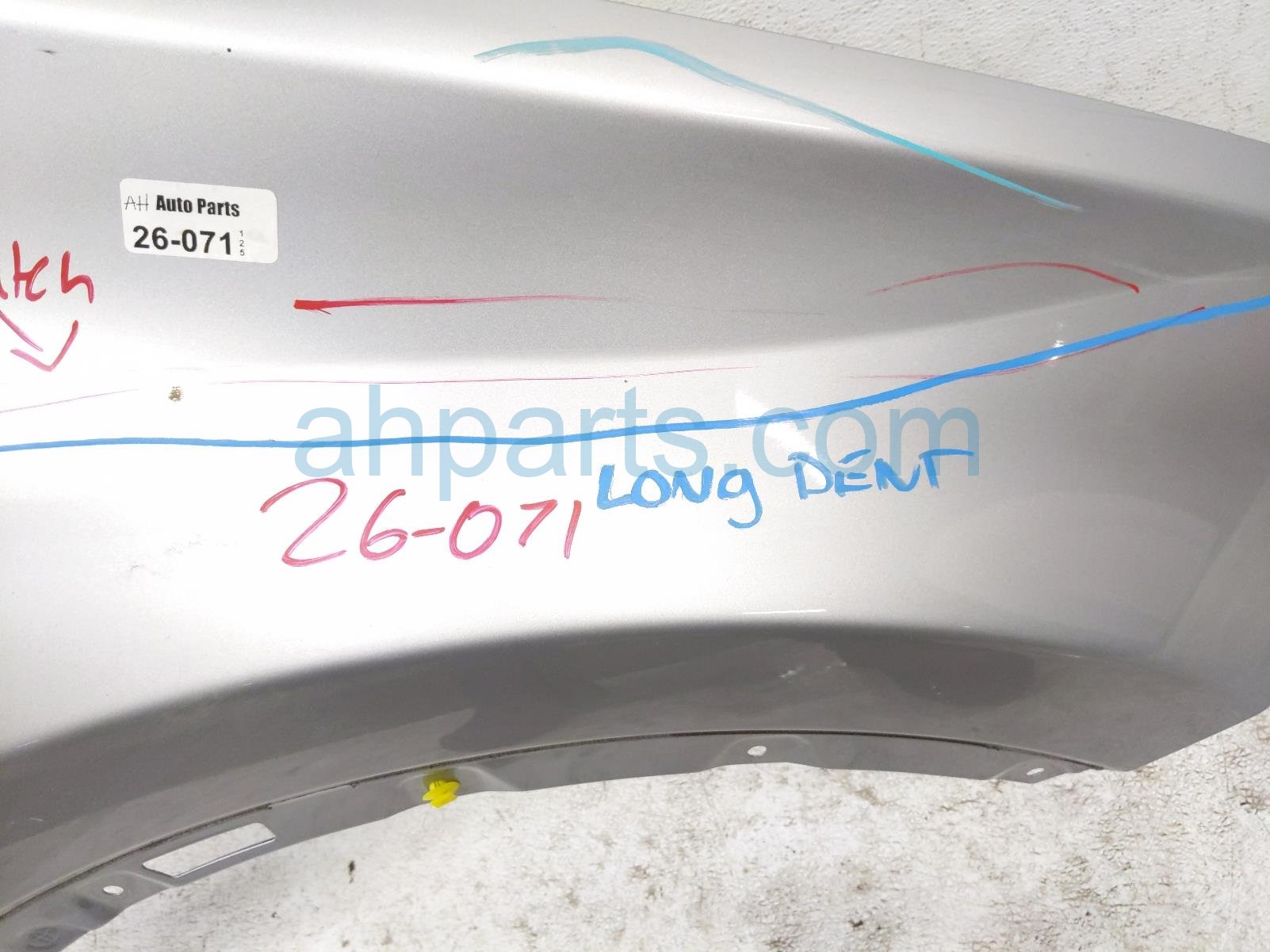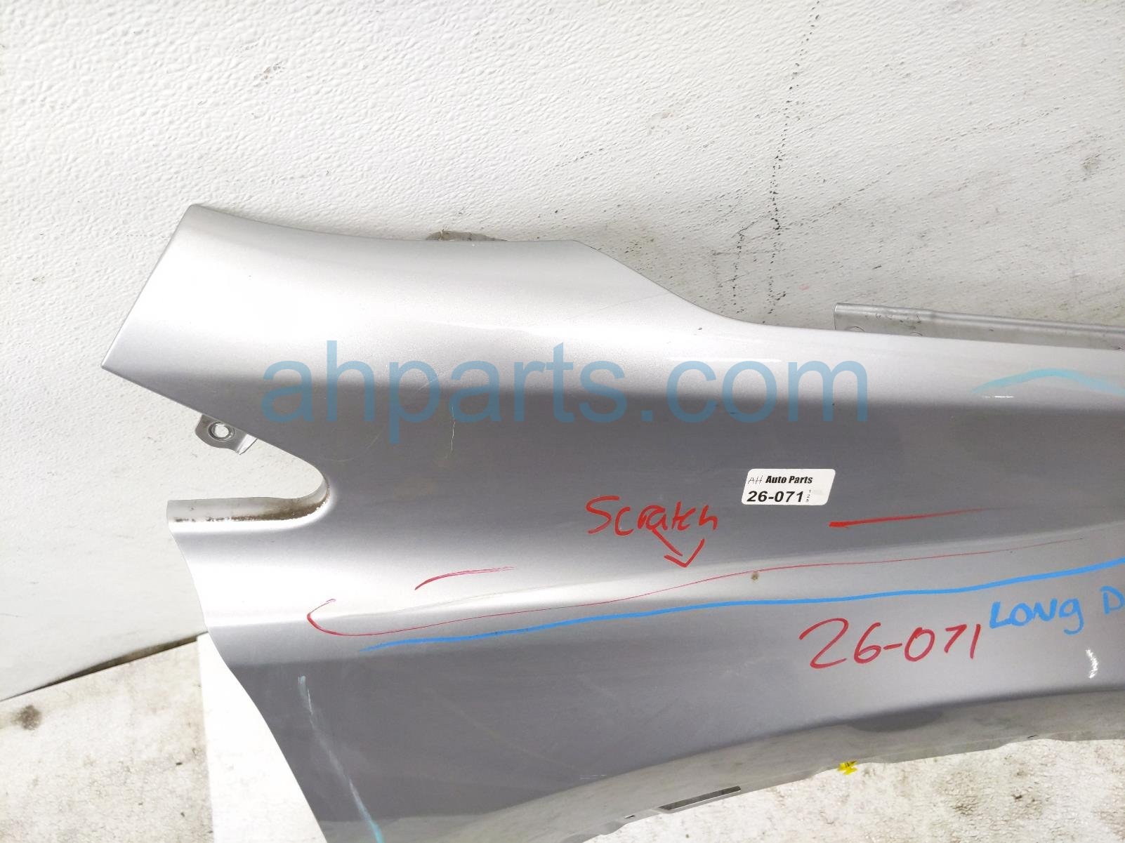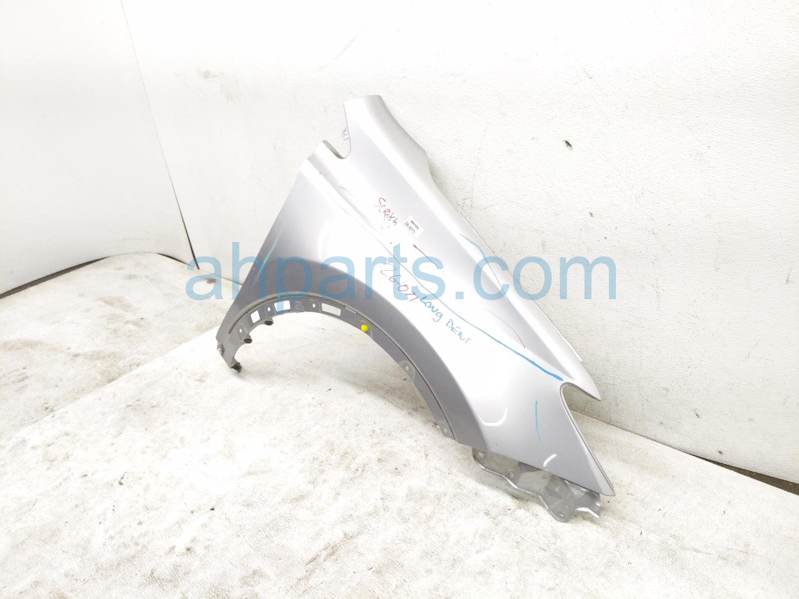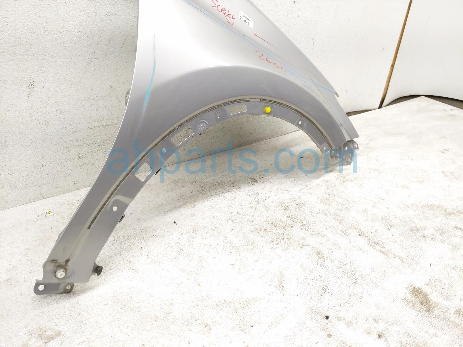 2018 Toyota RAV 4 front passenger fender - silver is a used item with a 1 year warranty. This OEM replacement front passenger fender - silver is genuine and has part numbers 53801-42170, and 5380142170. This Toyota part is for sale (please call for pricing). This item has the following note: 'Dented and scratched along the whole fender.'