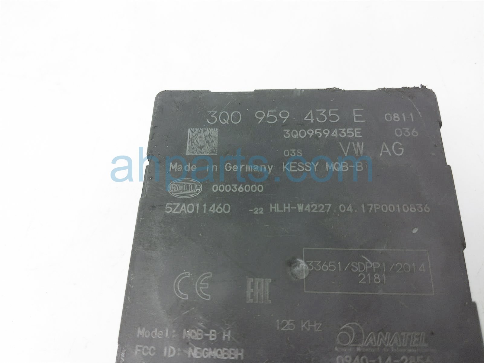 2018 Volkswagen Atlas front passenger keyless entry module is a used item with a 1 year warranty. This OEM replacement front passenger keyless entry module is genuine and has part numbers 3Q0-959-435-E, and 3Q0959435E. This Volkswagen part sells for $25.