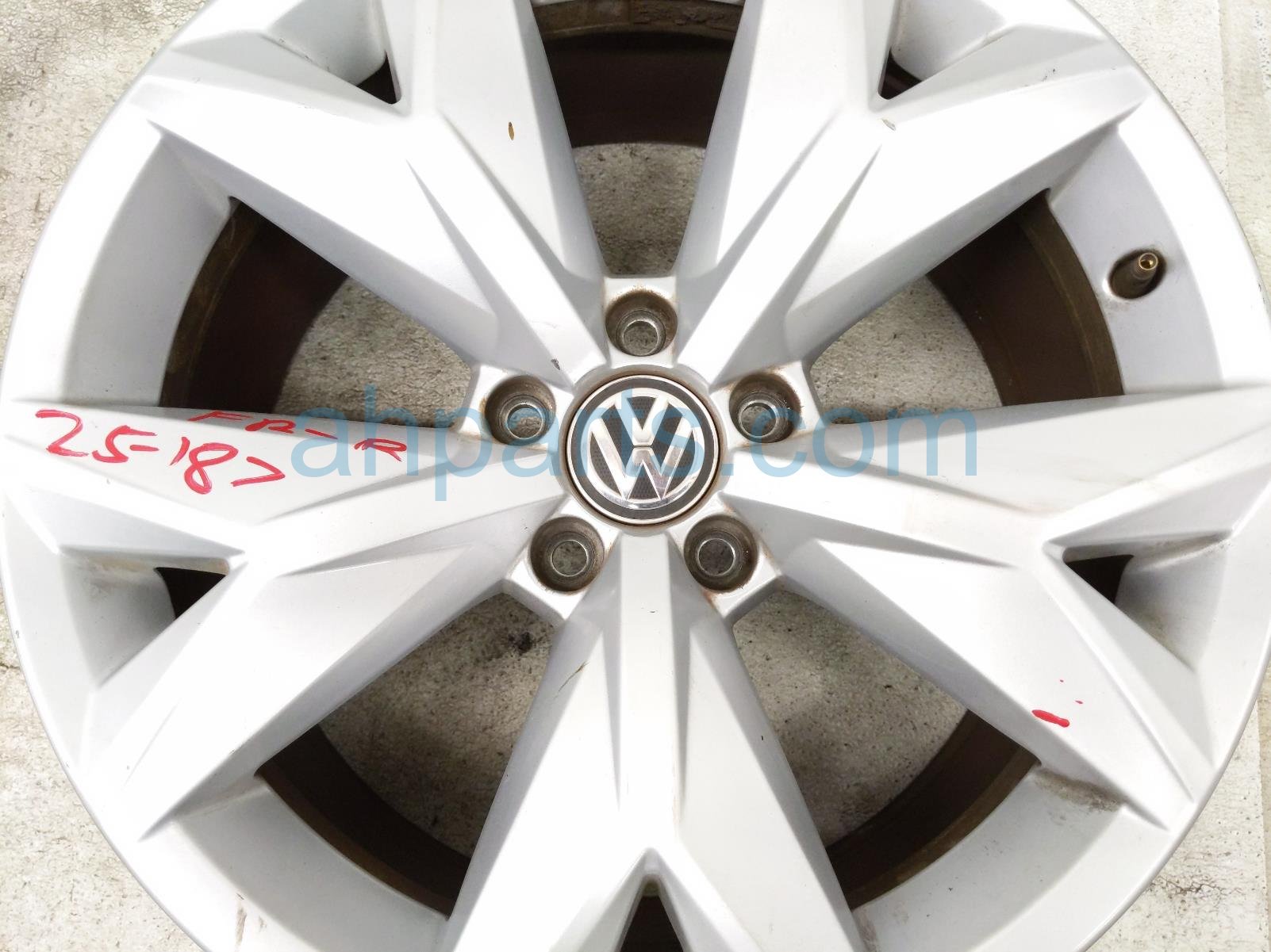 2018 Volkswagen Atlas front passenger wheel / rim is a used item with a 1 year warranty. This OEM replacement front passenger wheel / rim is genuine and has part numbers 3QF601025L8Z8. This Volkswagen part sells for $95.