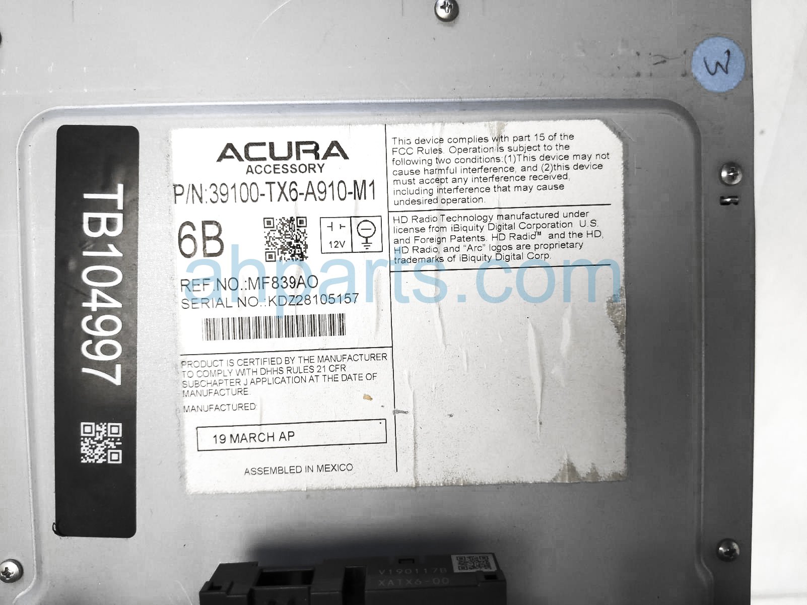 2019 Acura ILX radio receiver & display screen is a used item with a 1 year warranty. This OEM replacement radio receiver & display screen is genuine and has part numbers 39100-TX6-A910-M1, 39100TX6A910M1, 39542-TX6-A82, and 39542TX6A82. This Acura part sells for $95.