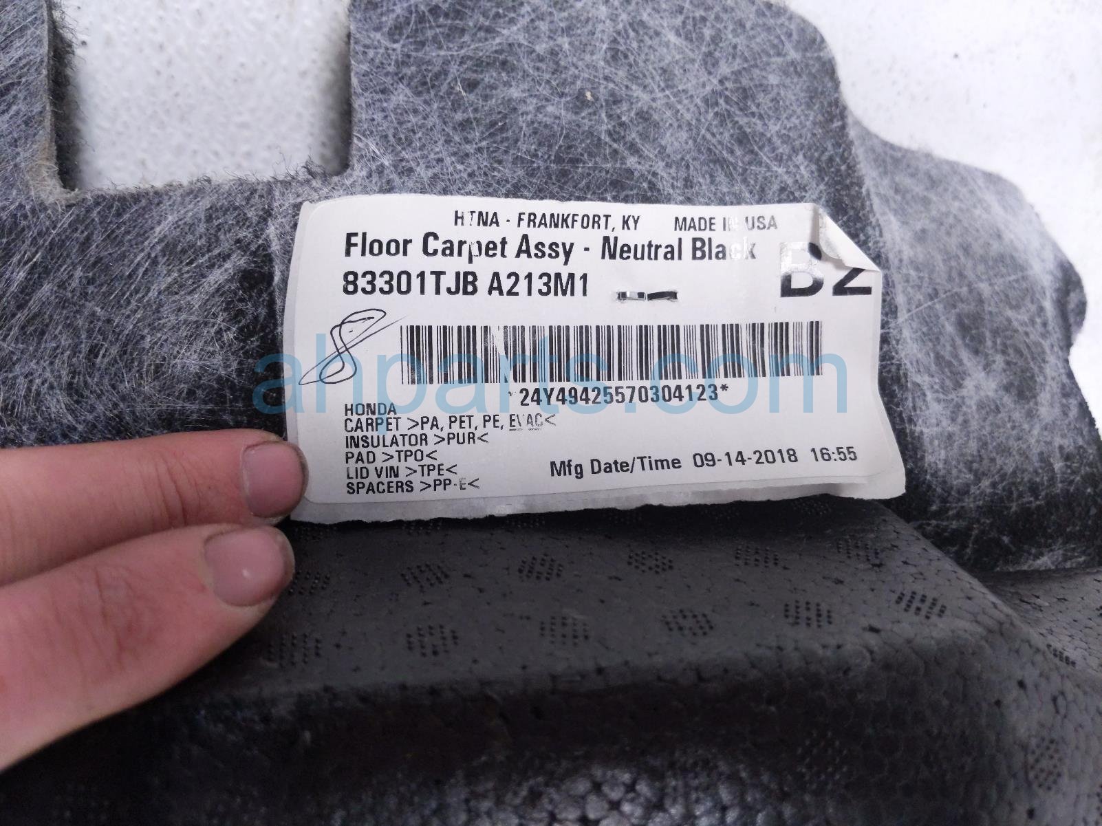 2019 Acura RDX front / ground main floor carpet assy - black is a used item with a 1 year warranty. This OEM replacement front / ground main floor carpet assy - black is genuine and has part numbers 83301-TJB-A21ZA, and 83301TJBA21ZA. This Acura part sells for $175.