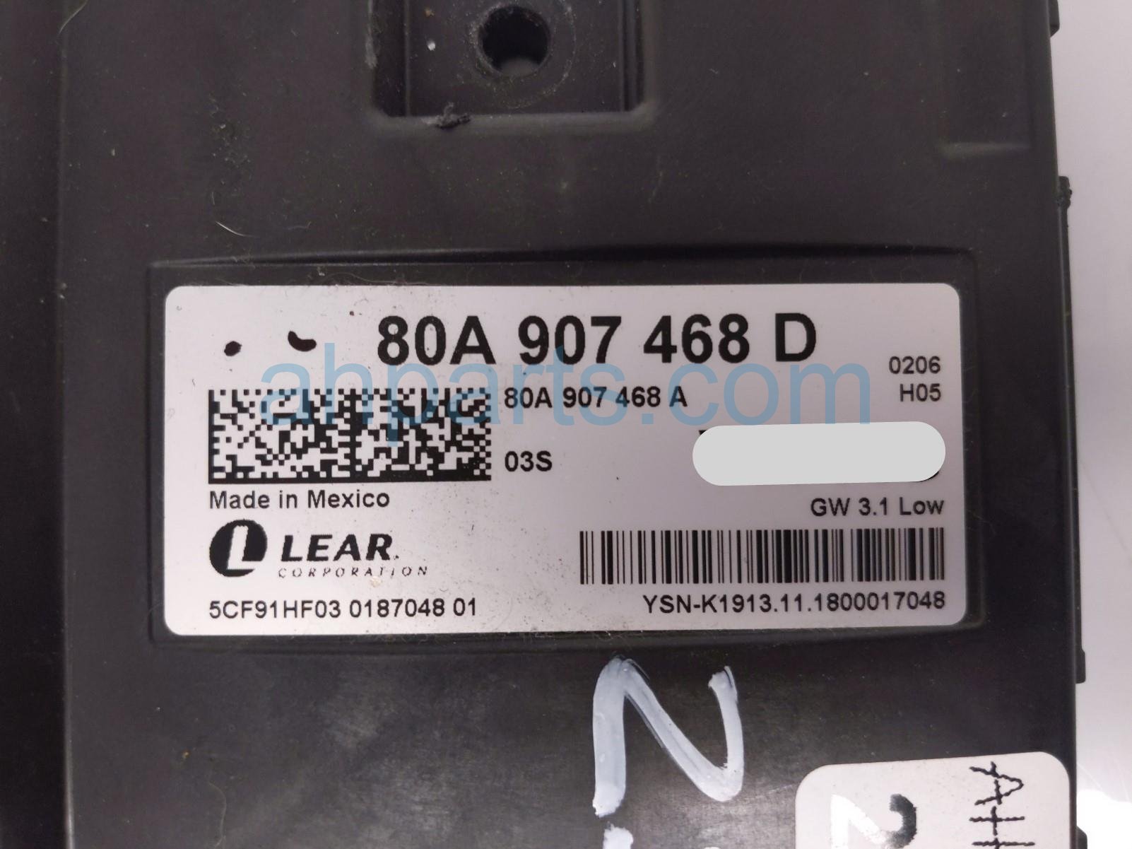 2019 Audi A4 Audi body control module - bcm - 2.0t is a used item with a 1 year warranty. This OEM replacement body control module - bcm - 2.0t is genuine and has part numbers 80A-907-468-A, and 80A907468A. This Audi part sells for $199.