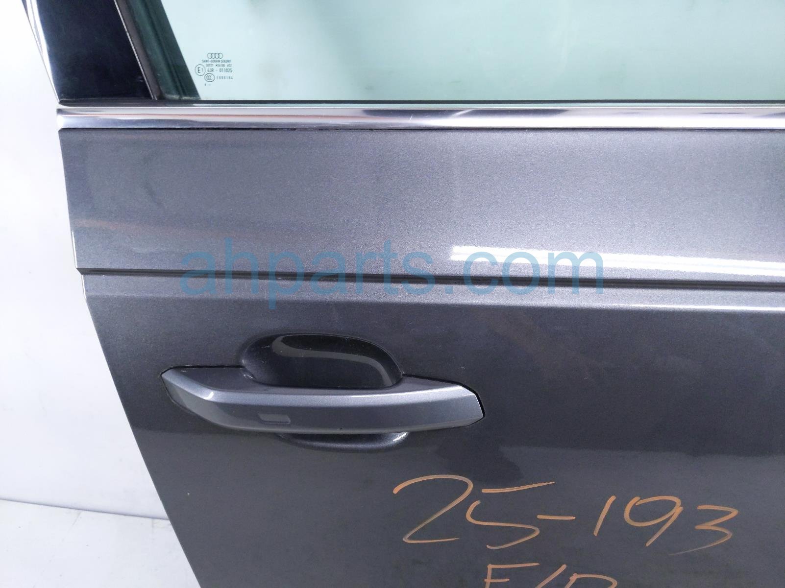 2019 Audi A4 Audi front passenger door - grey - no mirror/trim* is a used item with a 1 year warranty. This OEM replacement front passenger door - grey - no mirror/trim* is genuine and has part numbers 8W0-831-052-C, and 8W0831052C. This Audi part sells for $650. This item has the following note: 'Has light surface scuffs/scratches - grade a.'