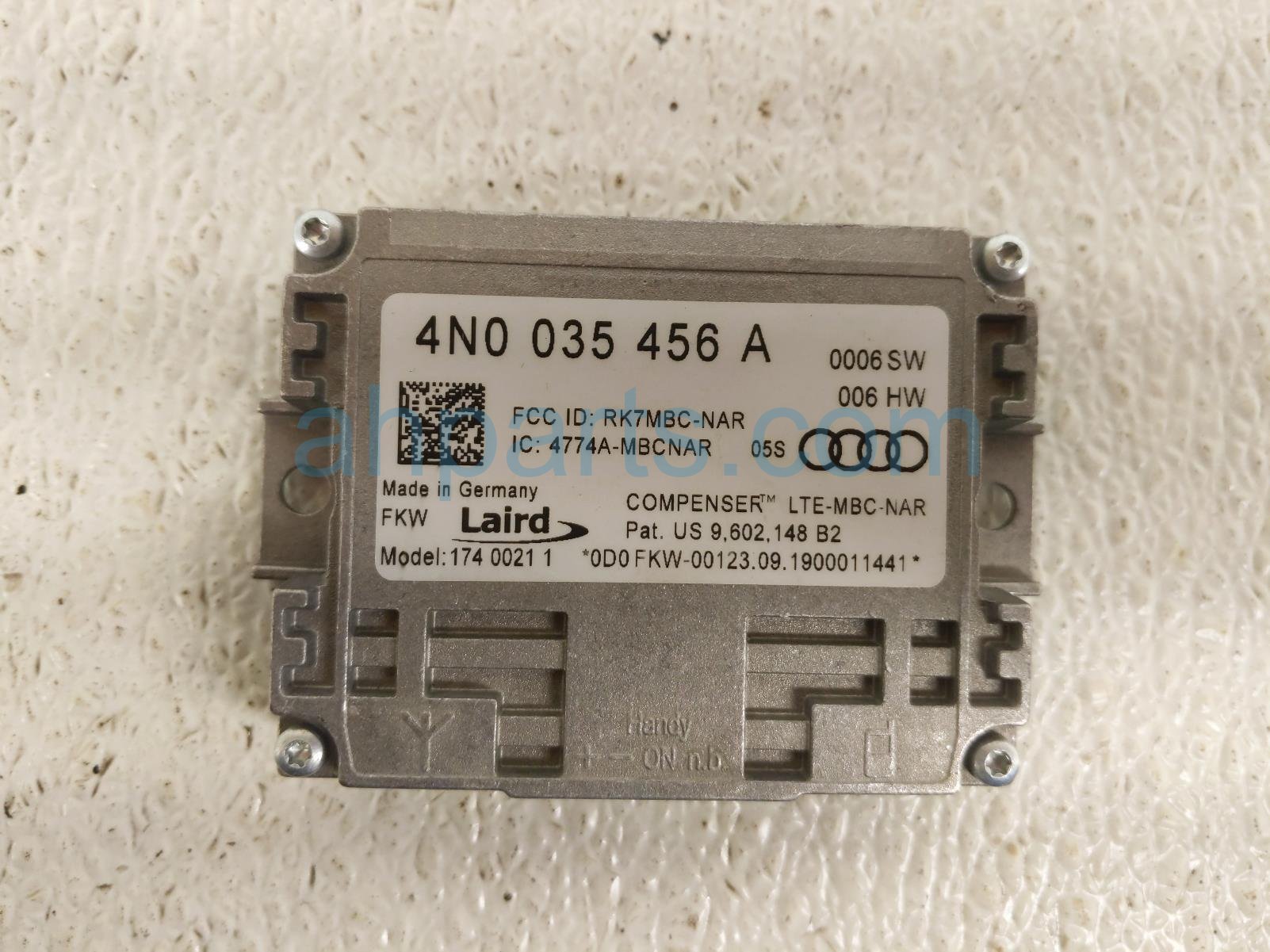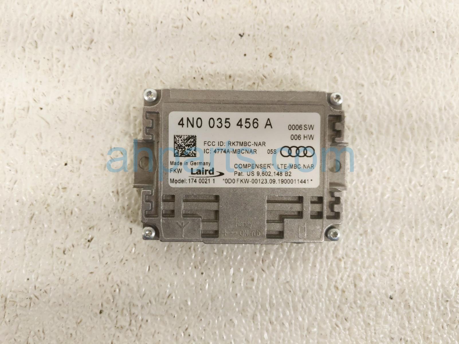 2019 Audi S5 Audi antenna amplifier module unit is a used item with a 1 year warranty. This OEM replacement antenna amplifier module unit is genuine and has part numbers 4N0-035-456-A, 4N0035456A, 4N0-035-456-E, and 4N0035456E. This Audi part is for sale (please call for pricing).