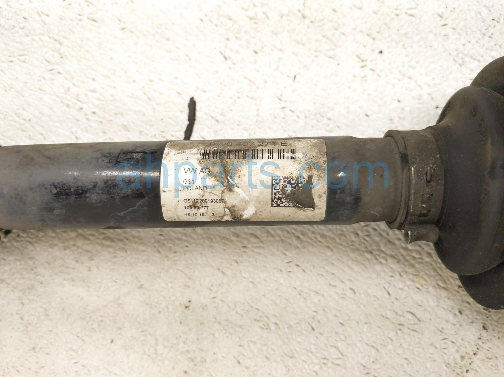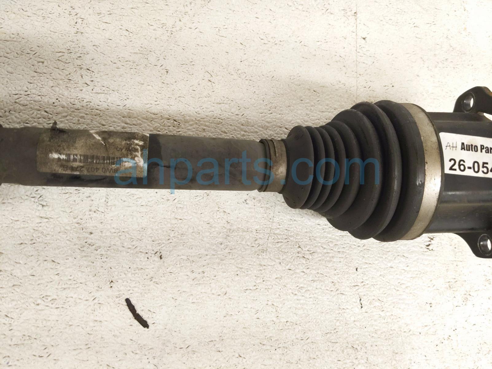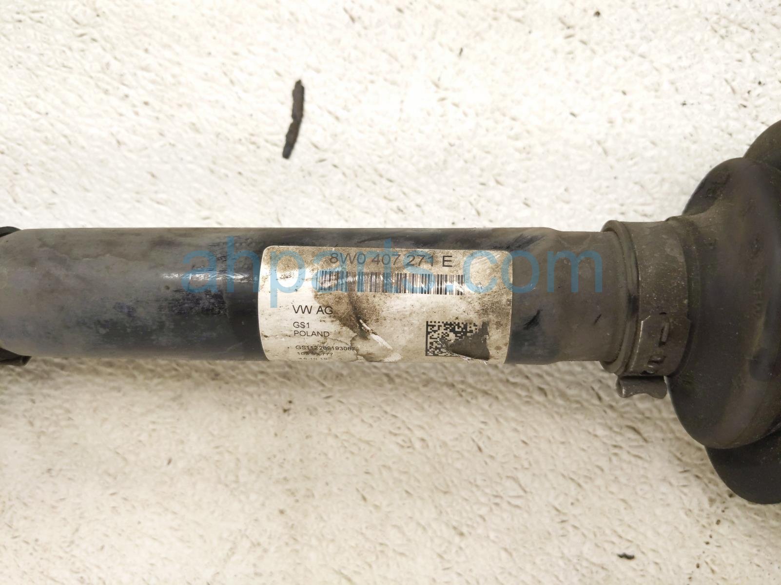 2019 Audi S5 Audi front passenger cv axle drive shaft - is a used item with a 1 year warranty. This OEM replacement front passenger cv axle drive shaft - is genuine and has part numbers 8W0-407-271-M, 8W0407271M, 8W0-407-271-E, and 8W0407271E. This Audi part is for sale (please call for pricing).