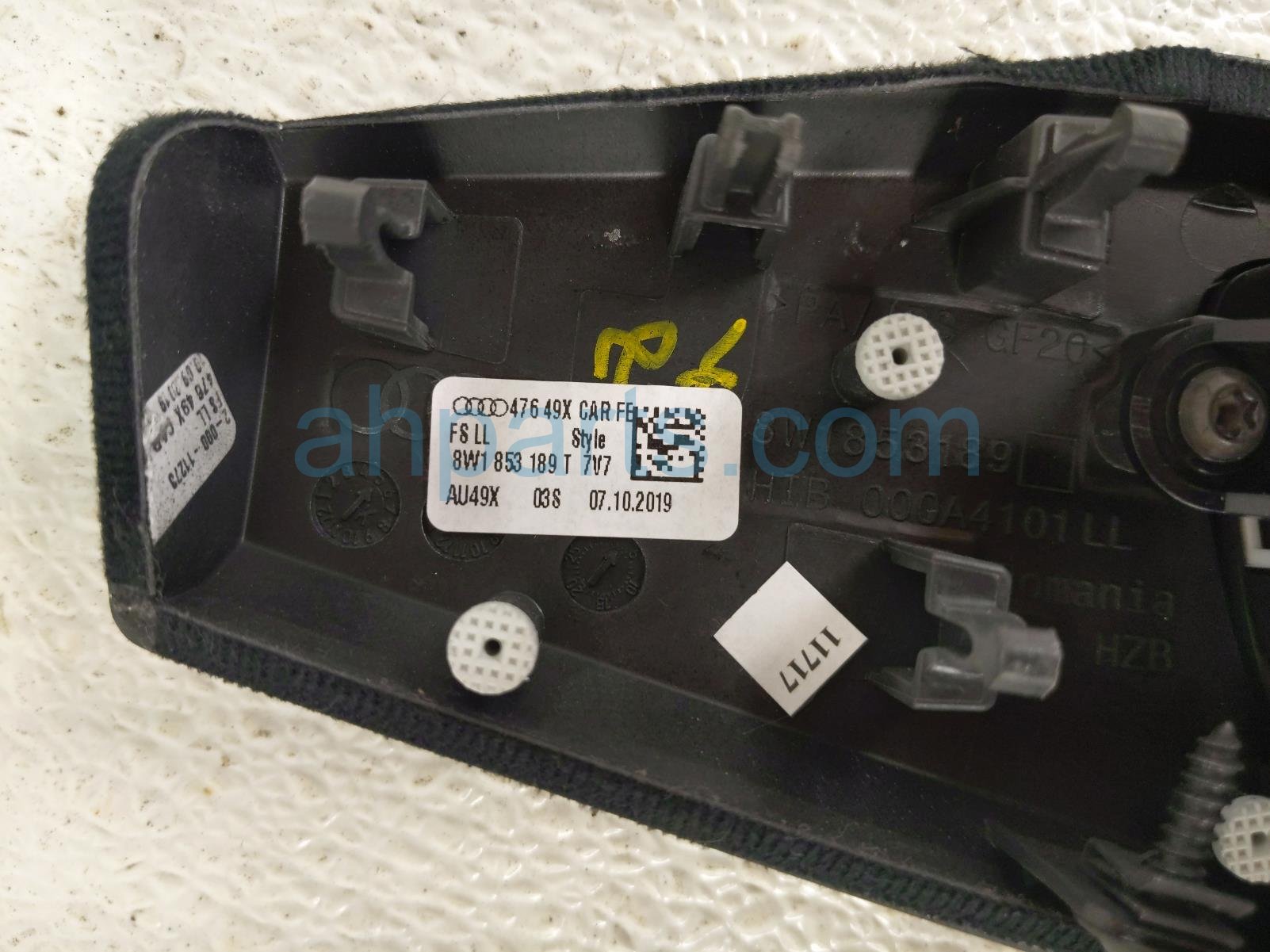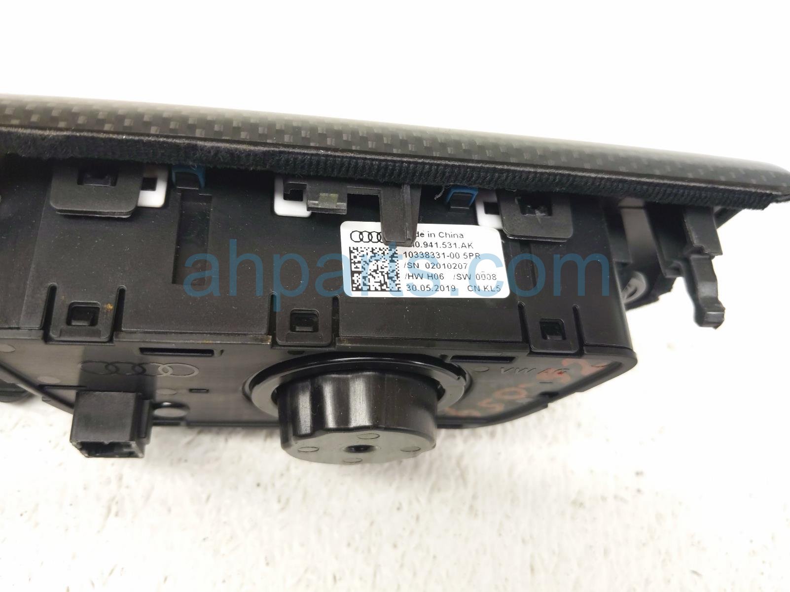 2019 Audi S5 Audi headlamp sw w/carbon trim-lh is a used item with a 1 year warranty. This OEM replacement headlamp sw w/carbon trim-lh is genuine and has part numbers 8W1-853-189-T-7V7, 8W1853189T7V7, 4M0-941-531-AS-5PR, 4M0941531AS5PR, 8W1-853-189-T, 8W1853189T, 4M0-941-531-AK, and 4M0941531AK. This Audi part is for sale (please call for pricing).