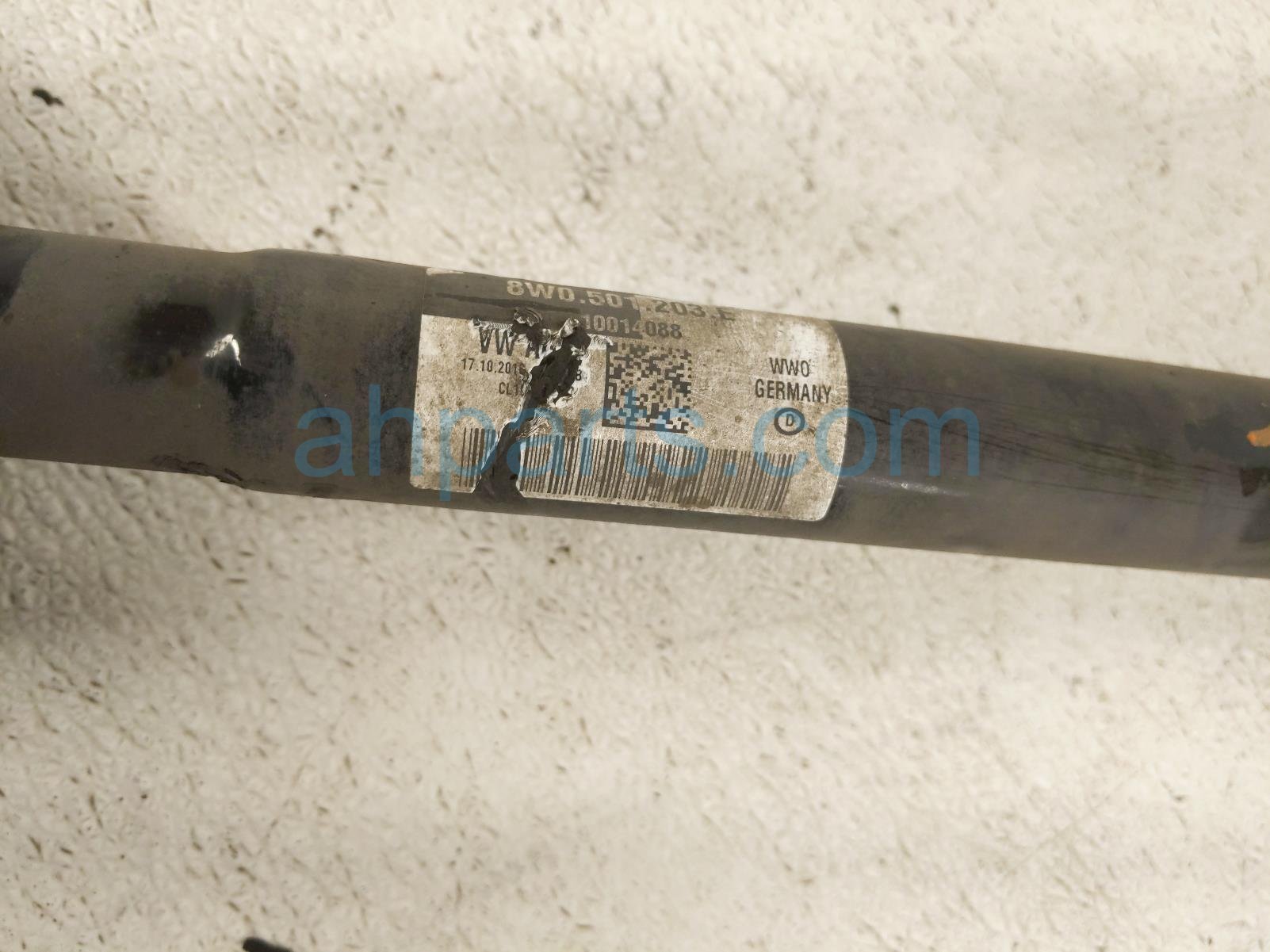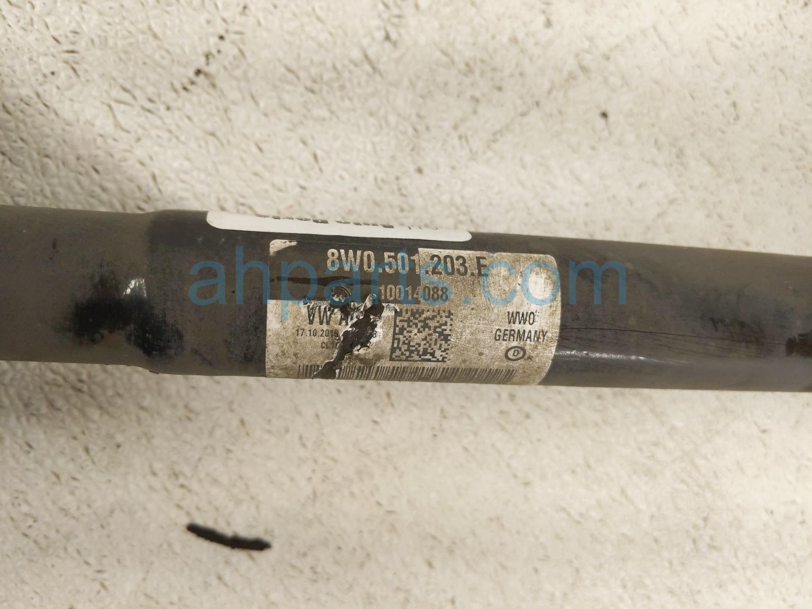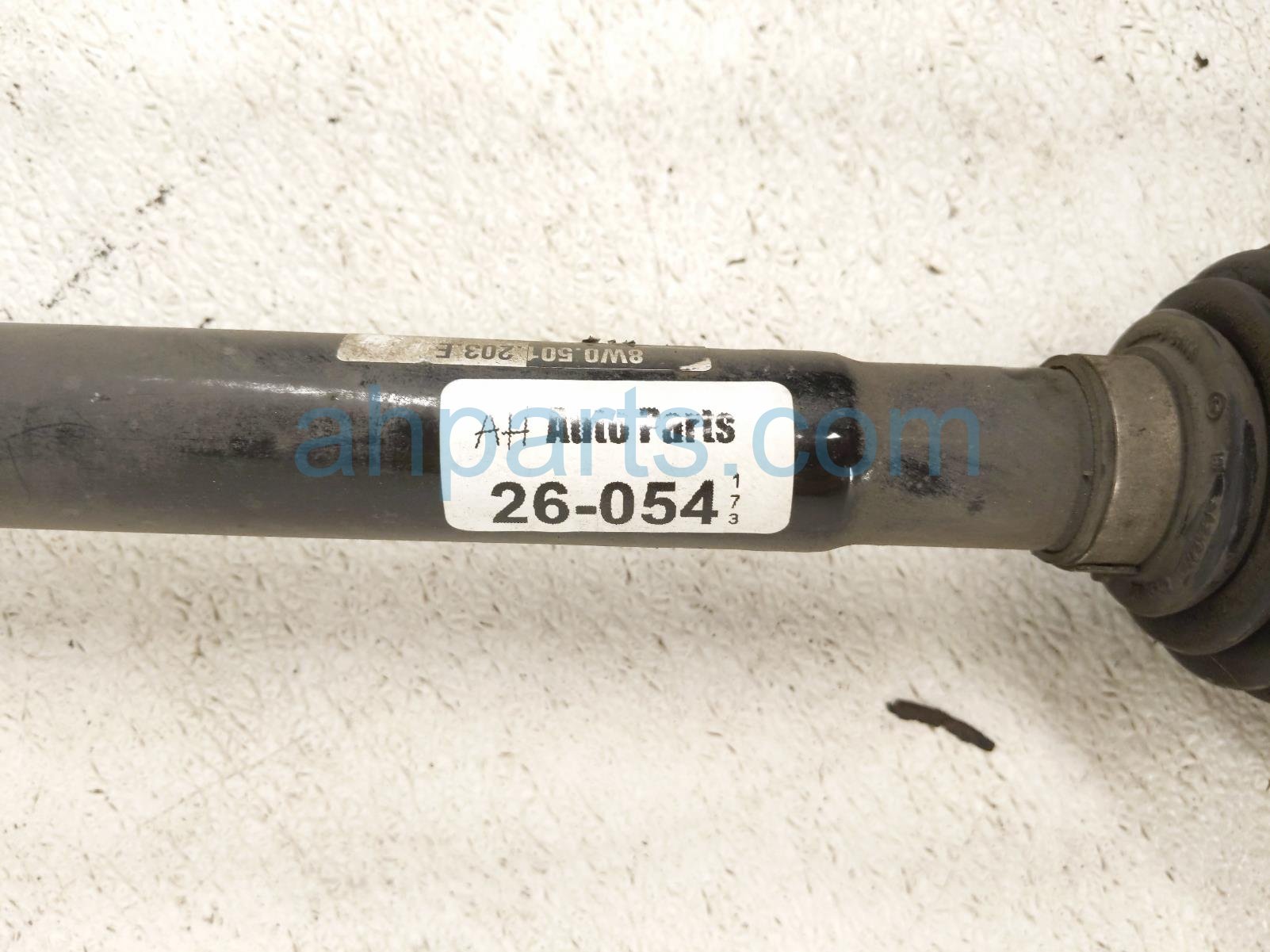 2019 Audi S5 Audi rear driver cv axle drive shaft is a used item with a 1 year warranty. This OEM replacement rear driver cv axle drive shaft is genuine and has part numbers 8W0-501-203-E, and 8W0501203E. This Audi part is for sale (please call for pricing).