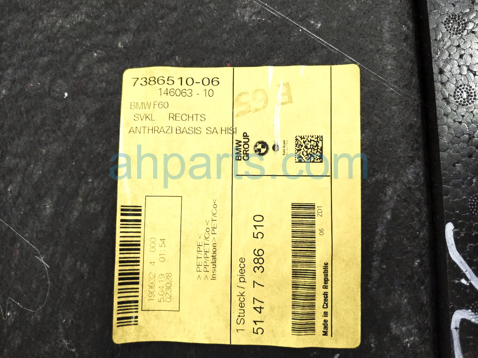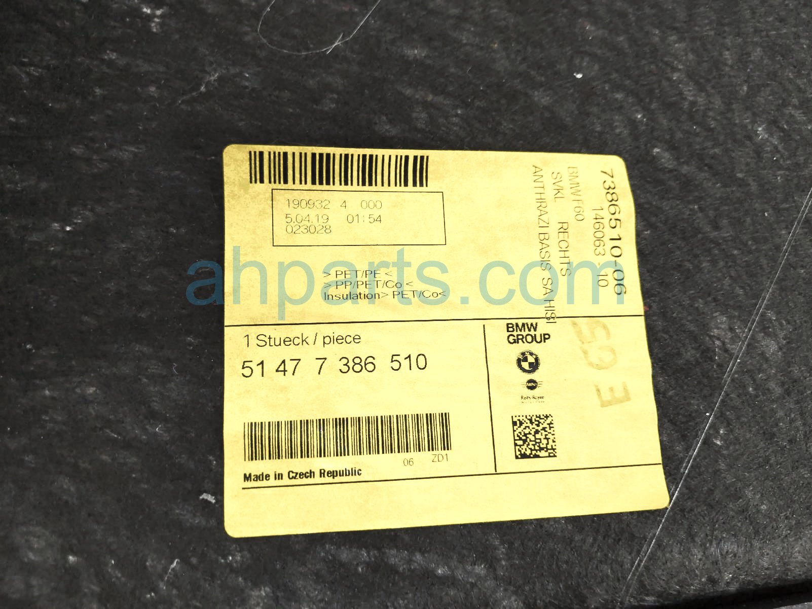 2019 BMW Minicooper Countryman passenger inside quarter trim liner - black is a used item with a 1 year warranty. This OEM replacement passenger inside quarter trim liner - black is genuine and has part numbers 51-47-7-386-510, and 51477386510. This BMW part sells for $50.
