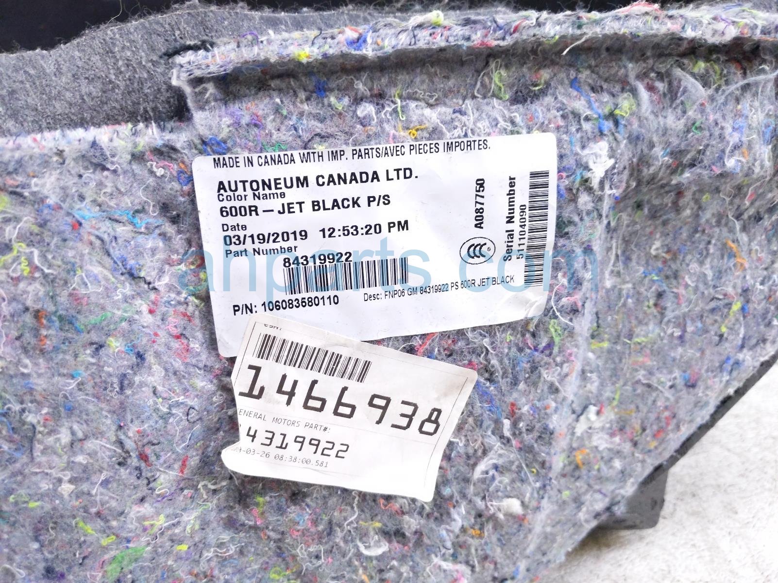 2019 Chevy Camaro front ground front passenger floor carpet - black cpe is a used item with a 1 year warranty. This OEM replacement front ground front passenger floor carpet - black cpe is genuine and has part numbers 84319922, and 85106350. This Chevy part sells for $100.