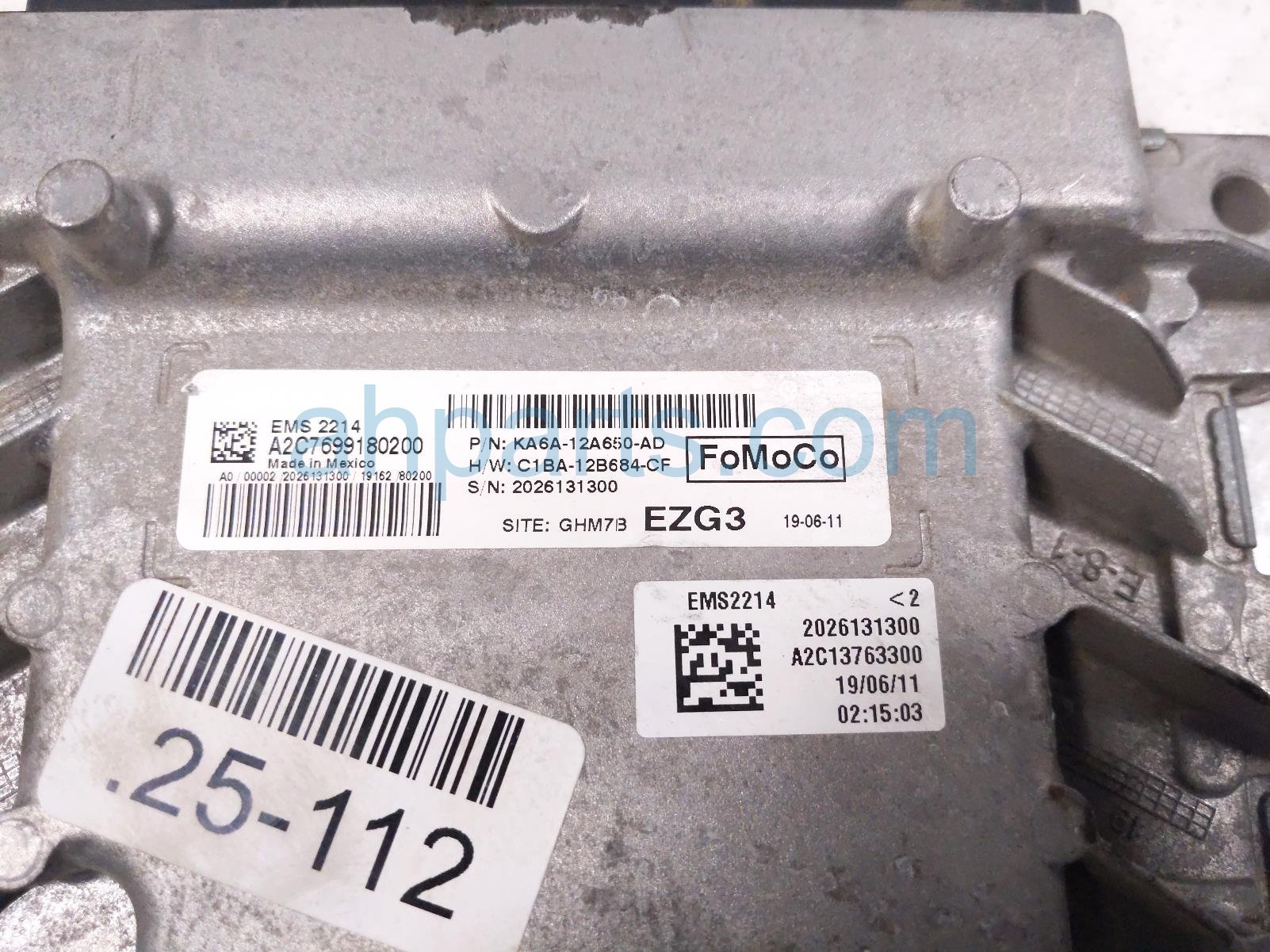 2019 Ford Fiesta ecu control / engine computer module unit is a used item with a 1 year warranty. This OEM replacement ecu control / engine computer module unit is genuine and has part numbers KA6A-12A650-AD, KA6A12A650AD, A2C7-699180-200, and A2C7699180200. This Ford part sells for $94.