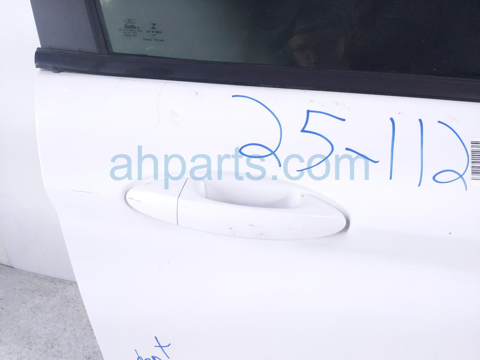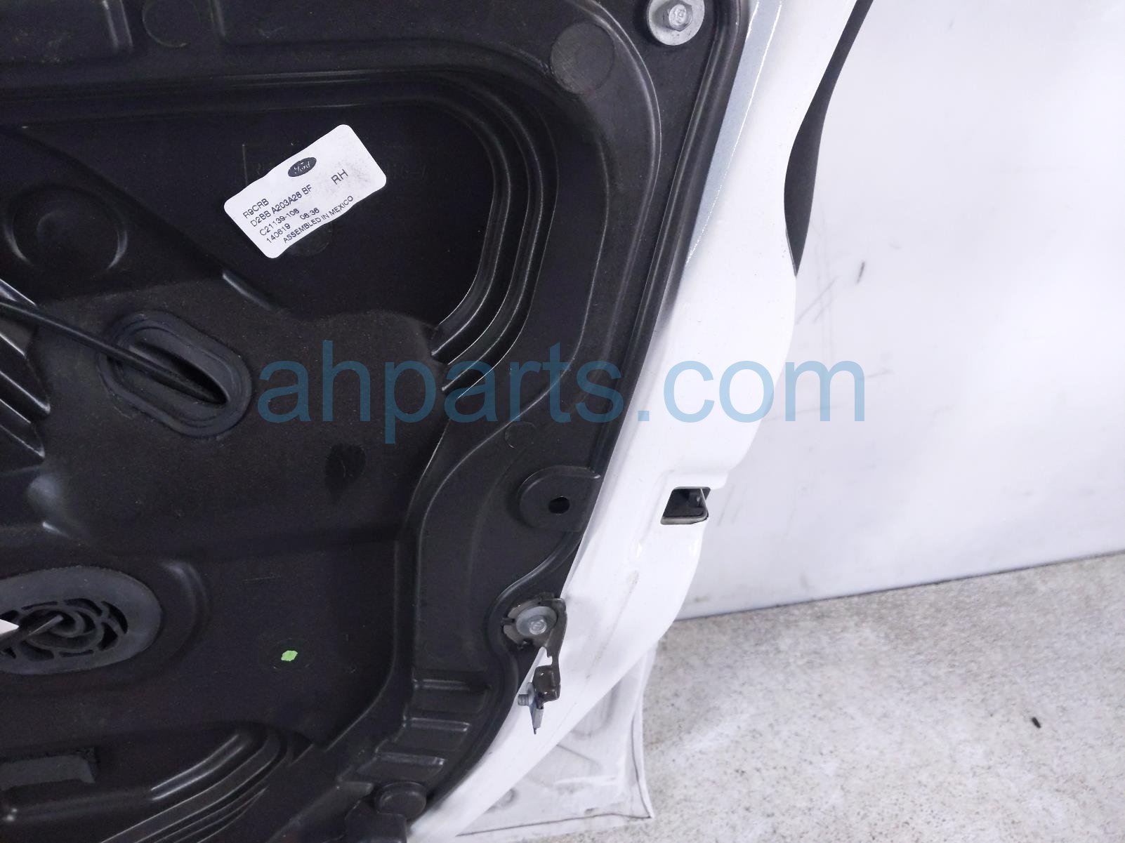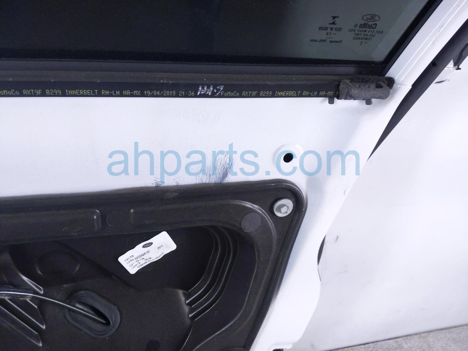 2019 Ford Fiesta front passenger door - white - no mirror/trim* is a used item with a 1 year warranty. This OEM replacement front passenger door - white - no mirror/trim* is genuine and has part numbers AE8Z-5423208-B, AE8Z5423208B, BE8Z-5421410-A, BE8Z5421410A, D2BZ-5420124-B, and D2BZ5420124B. This Ford part sells for $175. This item has the following note: 'Has a dent & some scuffs/scratches - grade b.'